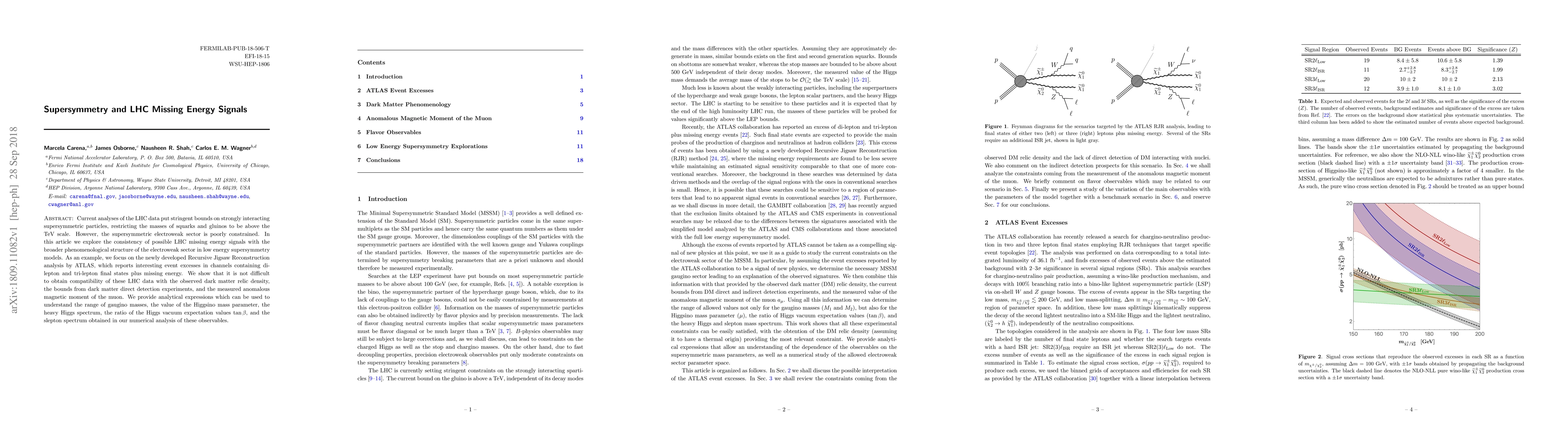 Current analyses of the LHC data put stringent bounds on strongly interacting supersymmetric particles, restricting the masses of squarks and gluinos to be above the TeV scale. However, the supersymmetric electroweak sector is poorly constrained. In this article we explore the consistency of possible LHC missing energy signals with the broader phenomenological structure of the electroweak sector in low energy supersymmetry models. As an example, we focus on the newly developed Recursive Jigsaw Reconstruction analysis by ATLAS, which reports interesting event excesses in channels containing di-lepton and tri-lepton final states plus missing energy. We show that it is not difficult to obtain compatibility of these LHC data with the observed dark matter relic density, the bounds from dark matter direct detection experiments, and the measured anomalous magnetic moment of the muon. We provide analytical expressions which can be used to understand the range of gaugino masses, the value of the Higgsino mass parameter, the heavy Higgs spectrum, the ratio of the Higgs vacuum expectation values $\tan \beta$, and the slepton spectrum obtained in our numerical analysis of these observables.