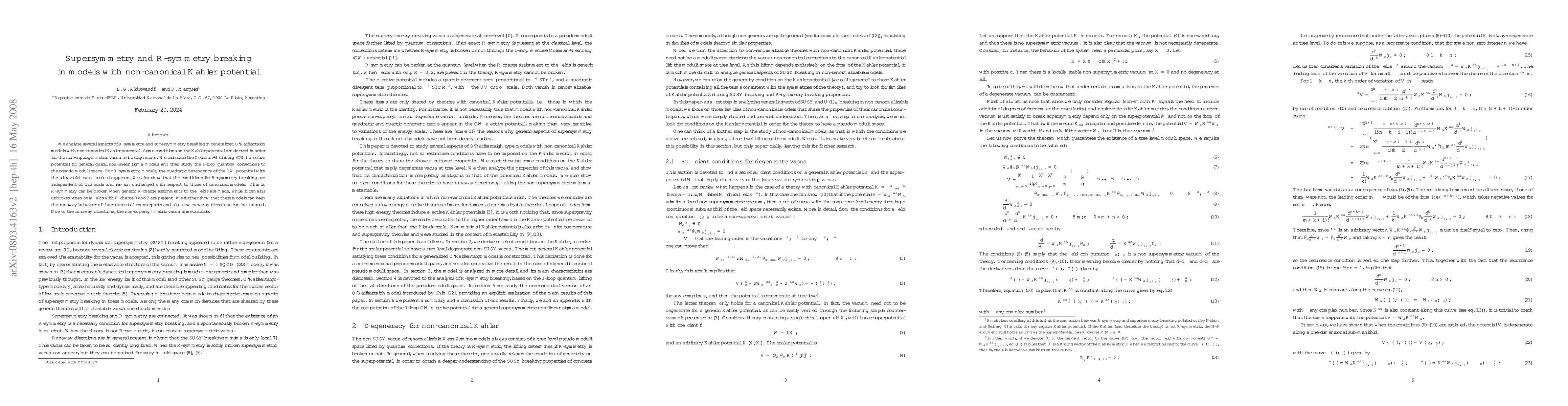 This paper investigates R-symmetry and supersymmetry breaking in generalized O'Raifeartaigh models with non-canonical Kahler potentials, deriving conditions for degenerate non-supersymmetric vacua and analyzing 1-loop quantum corrections. It finds that R-symmetry breaking conditions remain scale-independent, and models can exhibit new runaway directions, making non-supersymmetric vacua metastable.