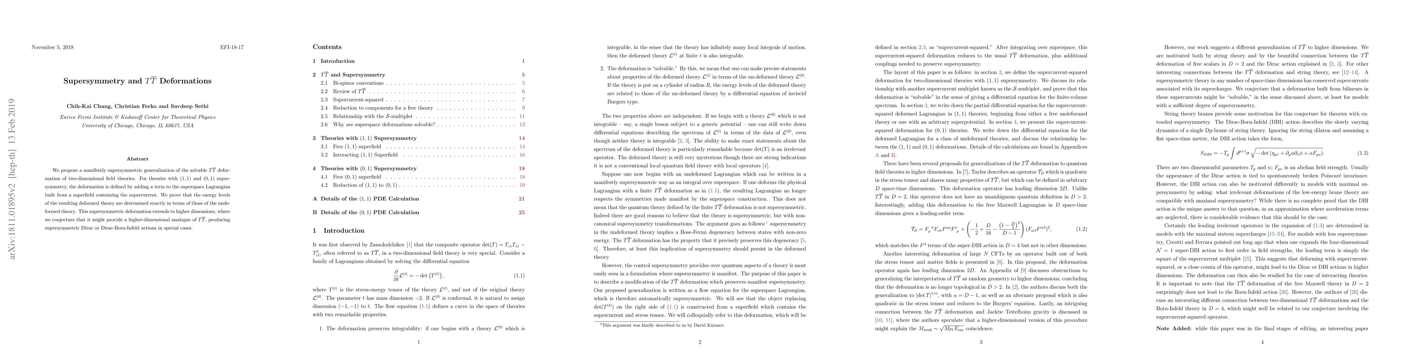 This paper proposes a supersymmetric extension of the $T \overline{T}$ deformation for two-dimensional field theories, showing that the energy levels of the deformed theory are exactly determined by those of the original. The authors conjecture that this deformation may generalize to higher dimensions, potentially yielding supersymmetric Dirac or Dirac-Born-Infeld actions.