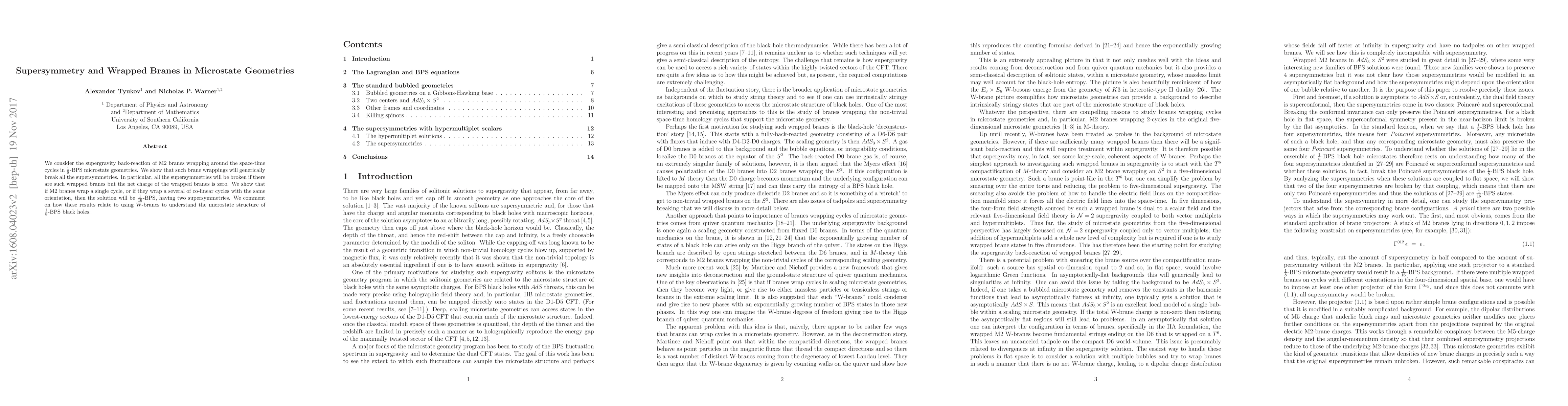 This paper examines the supergravity back-reaction of M2 branes wrapping space-time cycles in 1/8-BPS microstate geometries, demonstrating that brane wrappings generally break all supersymmetries. It finds that if M2 branes wrap single or co-linear cycles, the solution retains 1/16-BPS status with two remaining supersymmetries, and discusses implications for understanding microstate structures in black holes.