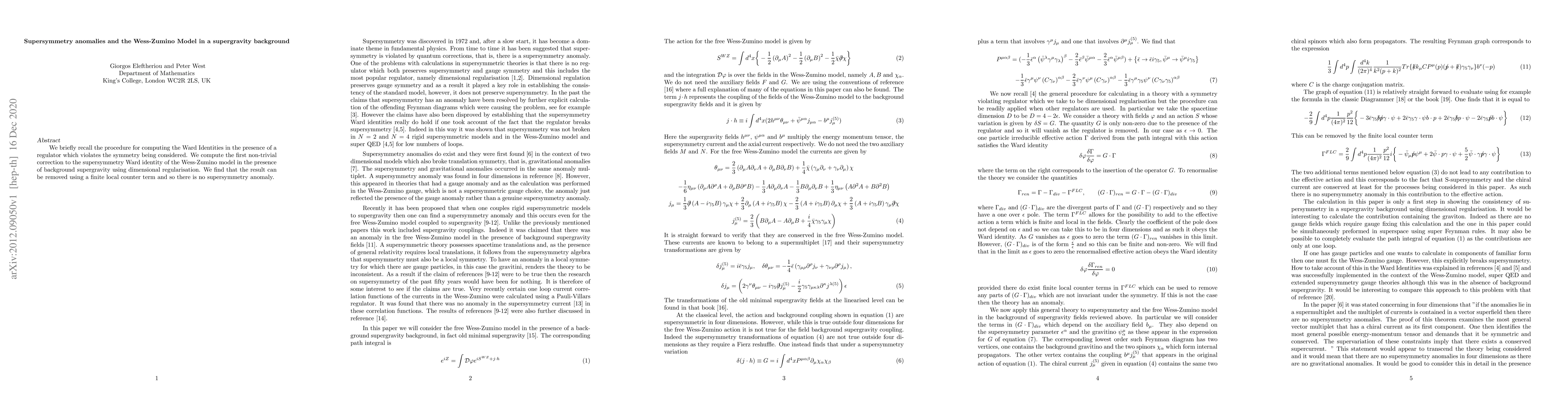 We briefly recall the procedure for computing the Ward Identities in the presence of a regulator which violates the symmetry being considered. We compute the first non-trivial correction to the supersymmetry Ward Identity of the Wess-Zumino model in the presence of background supergravity using dimensional regularisation. We find that the result can be removed using a finite local counter term and so there is no supersymmetry anomaly.