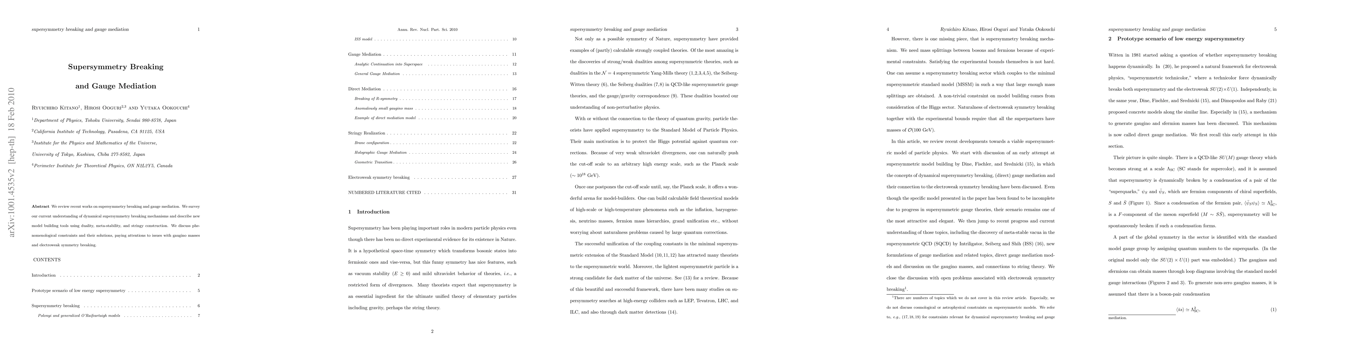 Summary: This paper reviews recent advancements in supersymmetry breaking and gauge mediation, exploring dynamical mechanisms and new model-building tools, while addressing phenomenological constraints and solutions related to gaugino masses and electroweak symmetry breaking.