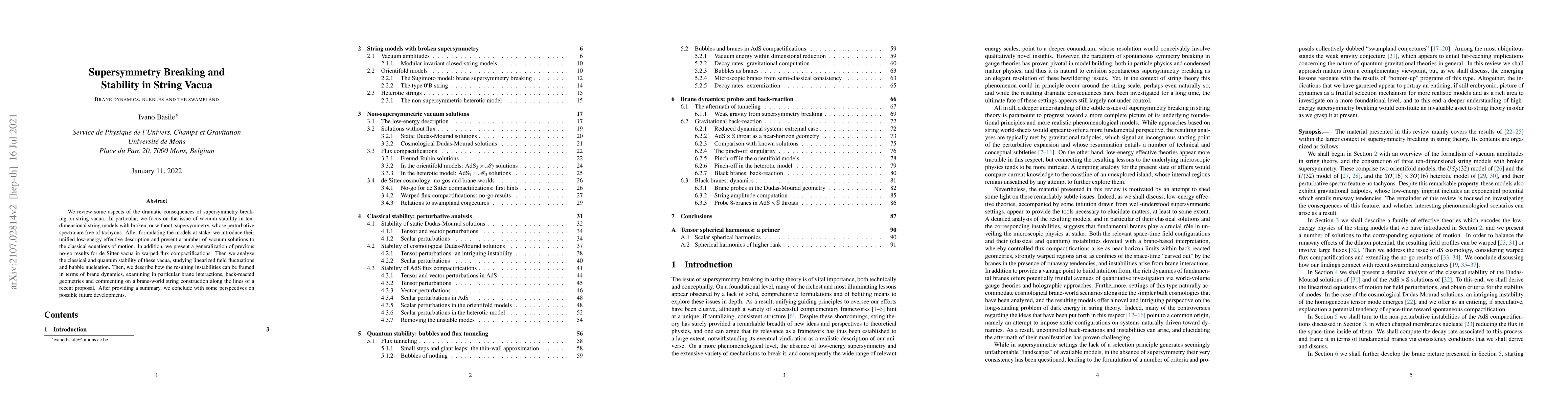 This paper reviews the impact of supersymmetry breaking on vacuum stability in string vacua, particularly focusing on ten-dimensional models. It analyzes classical and quantum stability, including brane dynamics, and discusses the implications for brane interactions and back-reacted geometries within the context of warped flux compactifications.