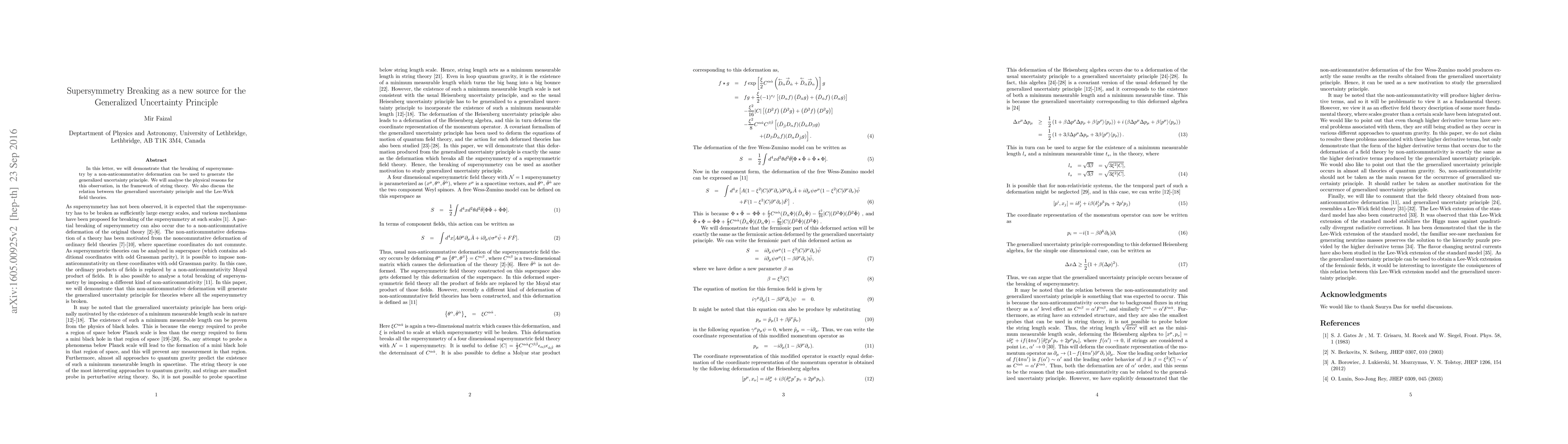 In this letter, we will demonstrate that the breaking of supersymmetry by a non-anticommutative deformation can be used to generate the generalized uncertainty principle. We will analyse the physical reasons for this observation, in the framework of string theory. We also discuss the relation between the generalized uncertainty principle and the Lee-Wick field theories.