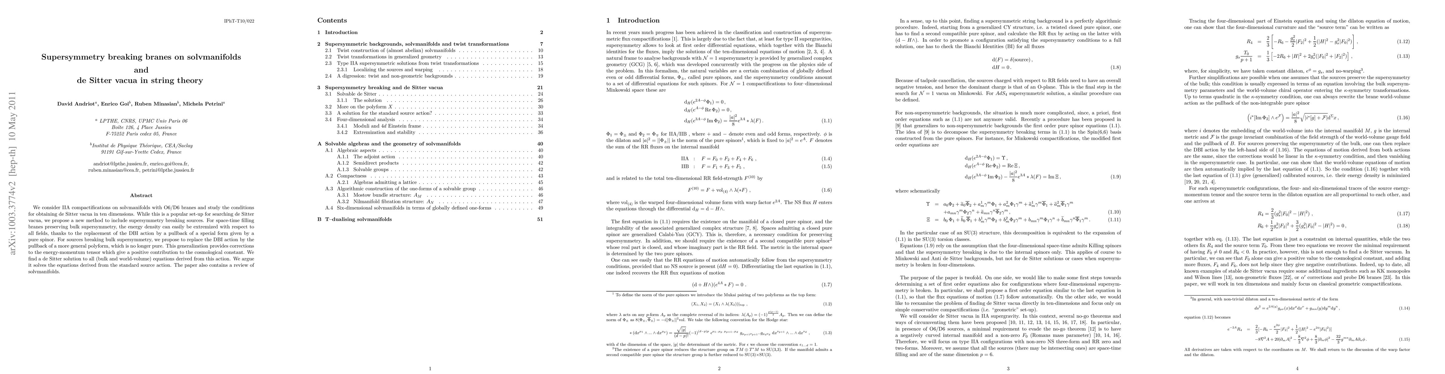We consider IIA compactifications on solvmanifolds with O6/D6 branes and study the conditions for obtaining de Sitter vacua in ten dimensions. While this is a popular set-up for searching de Sitter vacua, we propose a new method to include supersymmetry breaking sources. For space-time filling branes preserving bulk supersymmetry, the energy density can easily be extremized with respect to all fields, thanks to the replacement of the DBI action by a pullback of a special form given by a pure spinor. For sources breaking bulk supersymmetry, we propose to replace the DBI action by the pullback of a more general polyform, which is no longer pure. This generalization provides corrections to the energy-momentum tensor which give a positive contribution to the cosmological constant. We find a de Sitter solution to all (bulk and world-volume) equations derived from this action. We argue it solves the equations derived from the standard source action. The paper also contains a review of solvmanifolds.