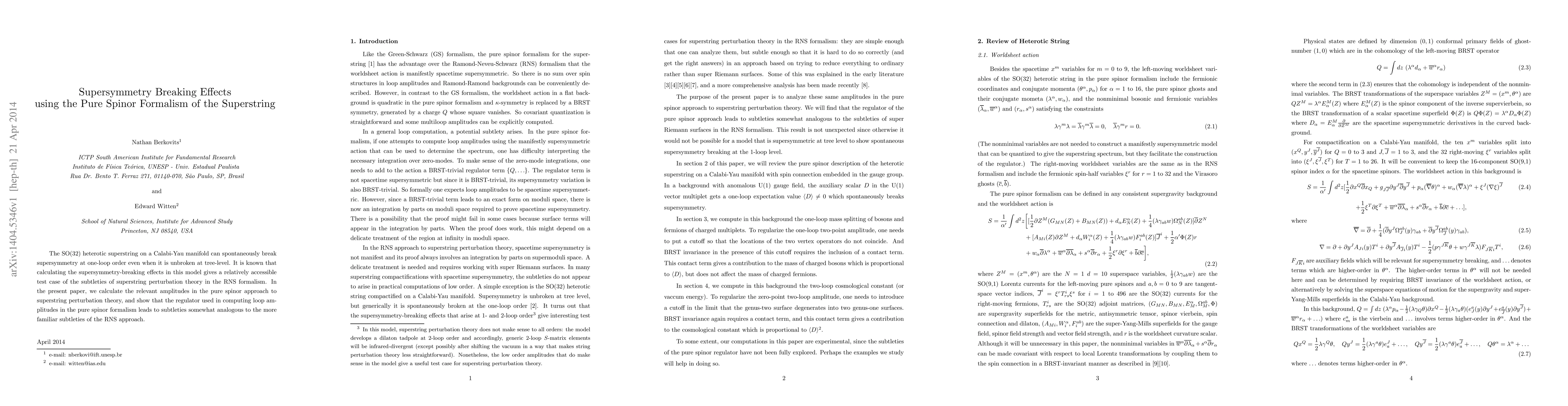 Summary: This paper investigates the spontaneous supersymmetry breaking in the SO(32) heterotic superstring on a Calabi-Yau manifold using the pure spinor formalism. It demonstrates that loop amplitudes calculated via this approach reveal complexities similar to those found in the Ramond-Neveu-Schwarz (RNS) formalism.