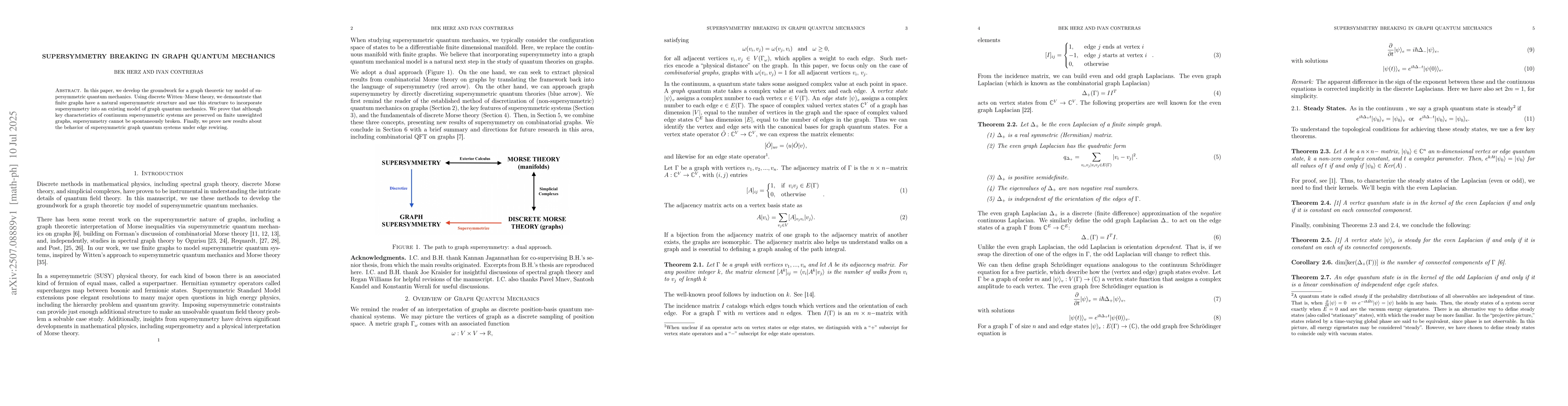 In this paper, we develop the groundwork for a graph theoretic toy model of supersymmetric quantum mechanics. Using discrete Witten-Morse theory, we demonstrate that finite graphs have a natural supersymmetric structure and use this structure to incorporate supersymmetry into an existing model of graph quantum mechanics. We prove that although key characteristics of continuum supersymmetric systems are preserved on finite unweighted graphs, supersymmetry cannot be spontaneously broken. Finally, we prove new results about the behavior of supersymmetric graph quantum systems under edge rewiring.