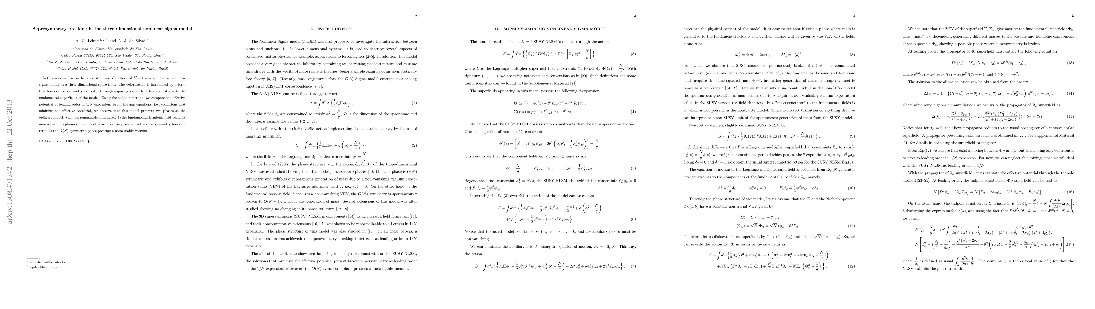 This paper investigates the phase structure of a deformed three-dimensional nonlinear sigma model with explicit supersymmetry breaking. The study finds two phases, where the fermionic field acquires mass due to the breaking term, and the symmetric phase exhibits meta-stability.