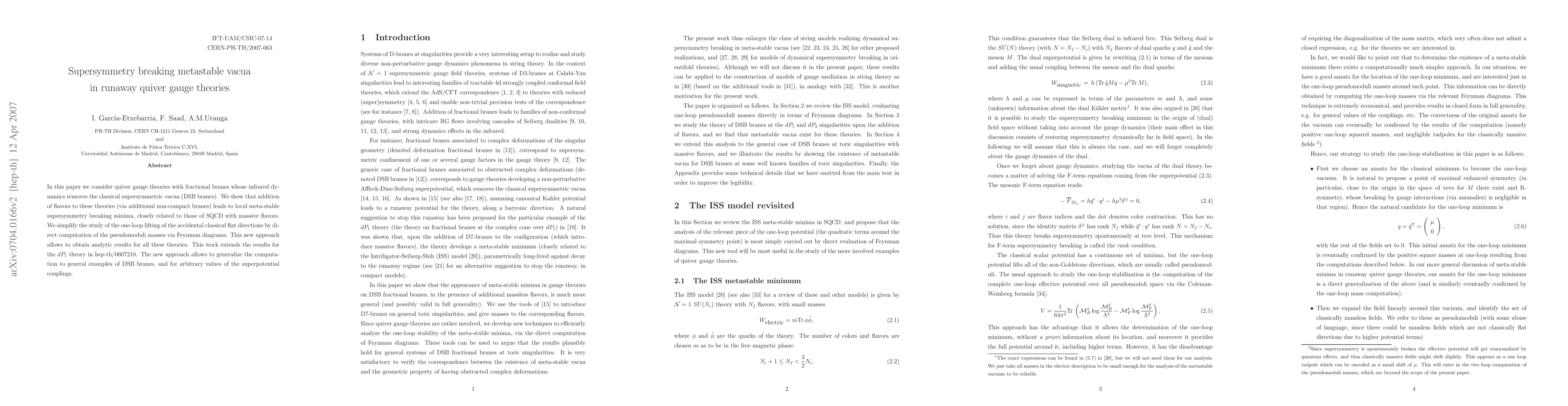 This paper explores quiver gauge theories with fractional branes that eliminate classical supersymmetric vacua. It demonstrates that adding flavors leads to metastable supersymmetry breaking vacua and introduces a novel method for computing pseudomoduli masses, yielding analytic results for these theories.