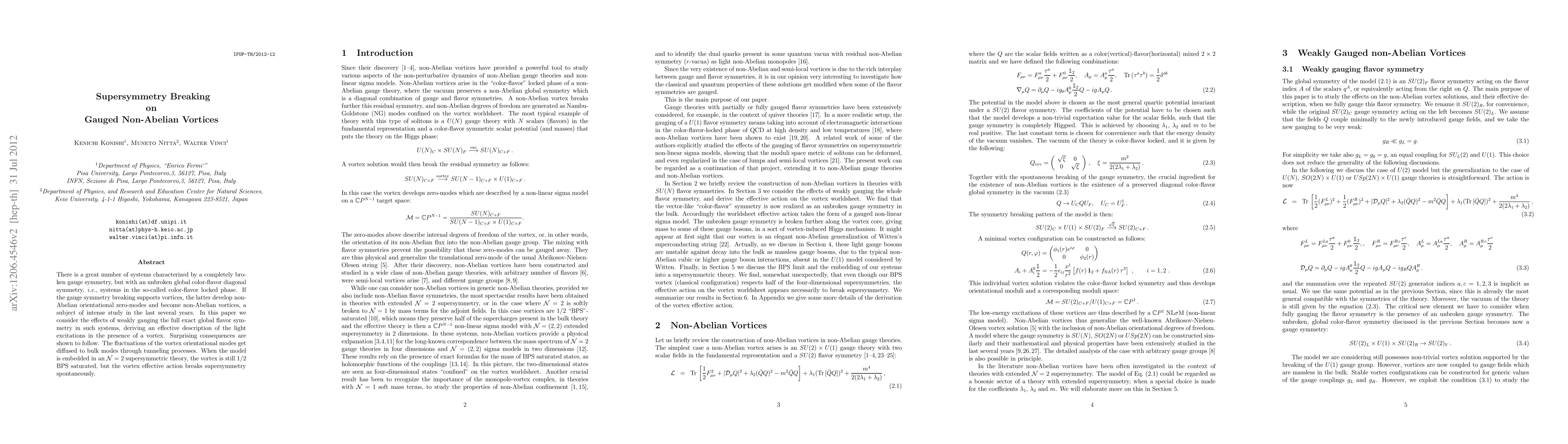 There are a large number of systems characterized by a completely broken gauge symmetry, but with an unbroken global color-flavor diagonal symmetry, i.e., systems in the so-called color-flavor locked phase. If the gauge symmetry breaking supports vortices, the latter develop non-Abelian orientational zero-modes and become non-Abelian vortices, a subject of intense study in the last several years. In this paper we consider the effects of weakly gauging the full exact global flavor symmetry in such systems, deriving an effective description of the light excitations in the presence of a vortex. Surprising consequences are shown to follow. The fluctuations of the vortex orientational modes get diffused to bulk modes through tunneling processes. When our model is embedded in a supersymmetric theory, the vortex is still 1/2 BPS saturated, but the vortex effective action breaks supersymmetry spontaneously.