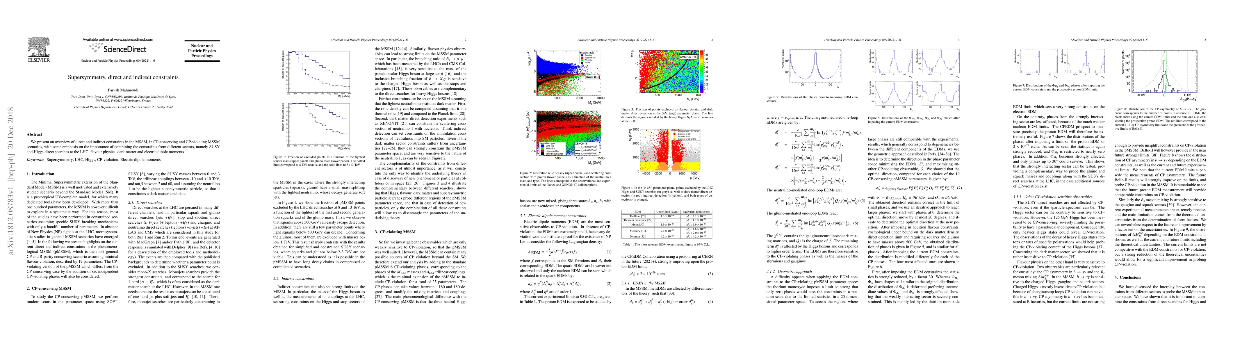 Researchers summarize constraints on supersymmetry in the Minimal Supersymmetric Model (MSSM), combining direct and indirect searches from LHC, flavor physics, dark matter, and electric dipole moments to assess its viability.