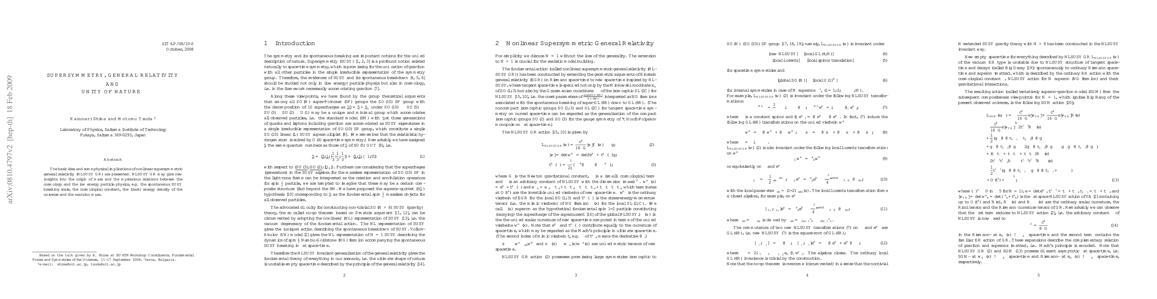 The paper explores Nonlinear Supersymmetric General Relativity (NLSUSY GR), suggesting it could unveil new perspectives on mass origin and connections between cosmology and particle physics, including spontaneous SUSY breaking scale, cosmological constant, dark energy density, and neutrino mass.