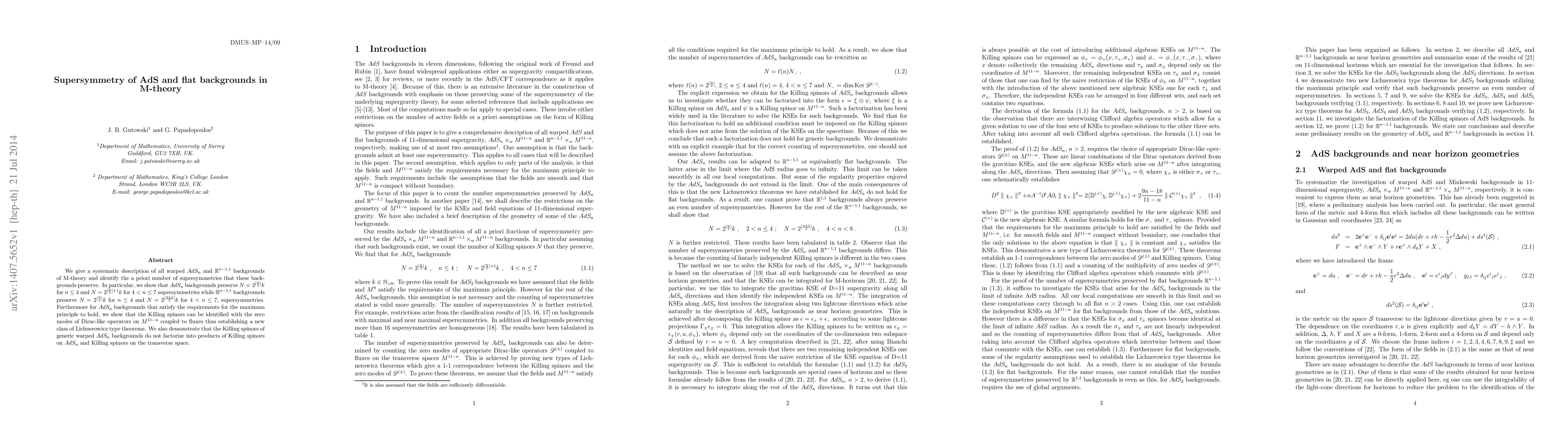 The paper systematically describes all warped AdSn and Rn-1,1 backgrounds in M-theory, identifying preserved supersymmetries. AdSn backgrounds preserve N=2^(n/2)k for n≤4 and N=2^(n/2+1)k for 4<n≤7 supersymmetries, while Rn-1,1 backgrounds preserve N=2^(n/2)k for n≤4 and N=2^(n+1/2)k for 4<n≤7. The research also establishes new Lichnerowicz-type theorems and shows that Killing spinors in AdSn don't factorize into separate AdS and transverse space components.