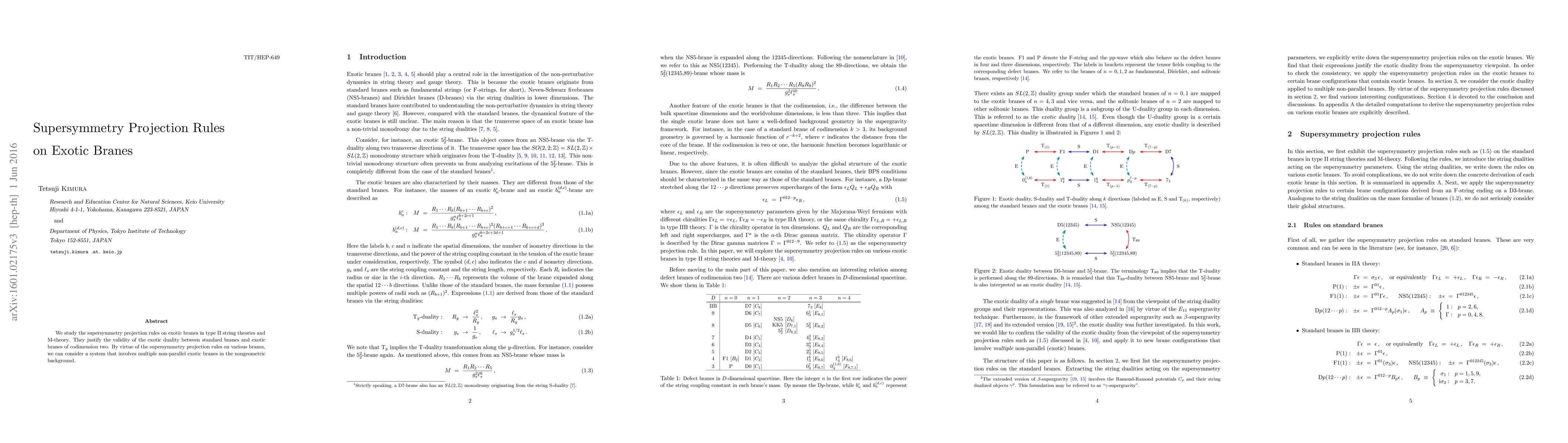 This paper investigates supersymmetry projection rules on exotic branes within type II string theories and M-theory, establishing the duality between standard and exotic branes of codimension two. It examines systems with multiple non-parallel exotic branes in nongeometric backgrounds.