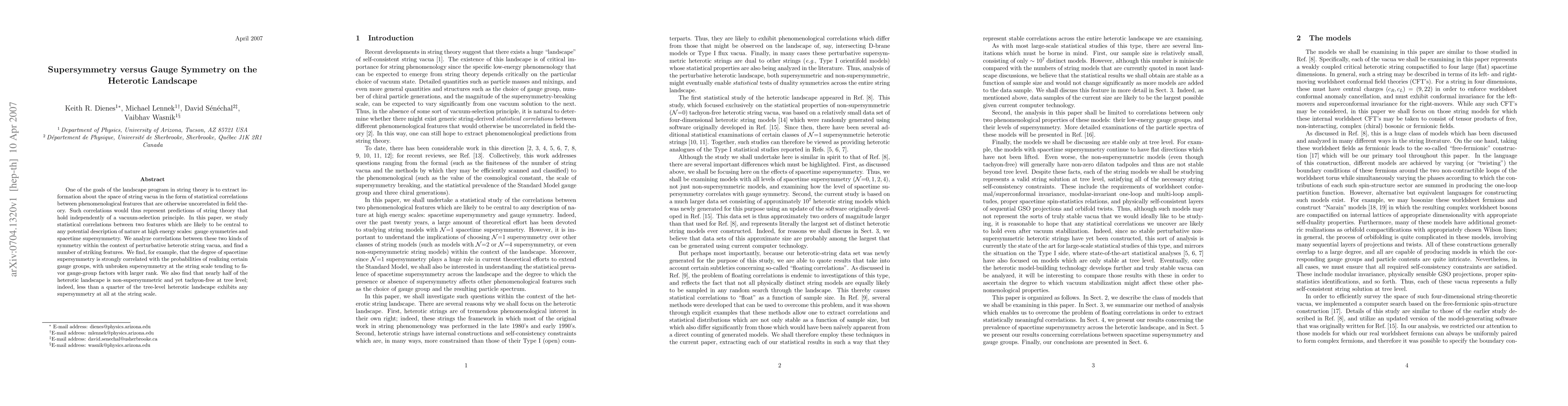 This paper investigates statistical correlations between gauge symmetries and spacetime supersymmetry in perturbative heterotic string vacua, revealing that unbroken supersymmetry favors higher-rank gauge groups. It finds that nearly half of the heterotic landscape is non-supersymmetric yet tachyon-free, with less than a quarter exhibiting any supersymmetry at the string scale.