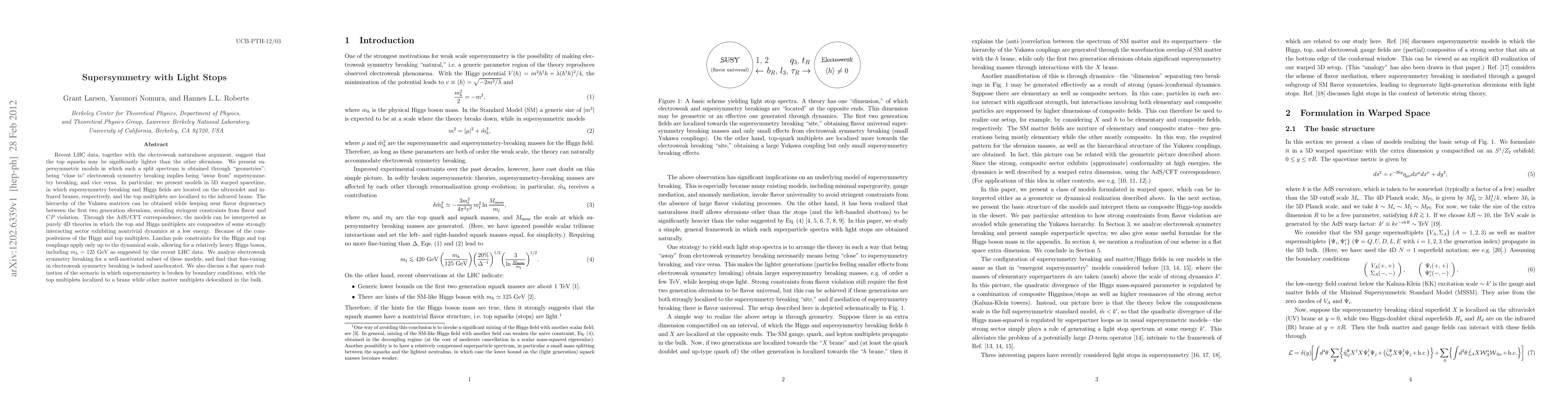 Recent LHC data, together with the electroweak naturalness argument, suggest that the top squarks may be significantly lighter than the other sfermions. We present supersymmetric models in which such a split spectrum is obtained through "geometries": being "close to" electroweak symmetry breaking implies being "away from" supersymmetry breaking, and vice versa. In particular, we present models in 5D warped spacetime, in which supersymmetry breaking and Higgs fields are located on the ultraviolet and infrared branes, respectively, and the top multiplets are localized to the infrared brane. The hierarchy of the Yukawa matrices can be obtained while keeping near flavor degeneracy between the first two generation sfermions, avoiding stringent constraints from flavor and CP violation. Through the AdS/CFT correspondence, the models can be interpreted as purely 4D theories in which the top and Higgs multiplets are composites of some strongly interacting sector exhibiting nontrivial dynamics at a low energy. Because of the compositeness of the Higgs and top multiplets, Landau pole constraints for the Higgs and top couplings apply only up to the dynamical scale, allowing for a relatively heavy Higgs boson, including m_h = 125 GeV as suggested by the recent LHC data. We analyze electroweak symmetry breaking for a well-motivated subset of these models, and find that fine-tuning in electroweak symmetry breaking is indeed ameliorated. We also discuss a flat space realization of the scenario in which supersymmetry is broken by boundary conditions, with the top multiplets localized to a brane while other matter multiplets delocalized in the bulk.