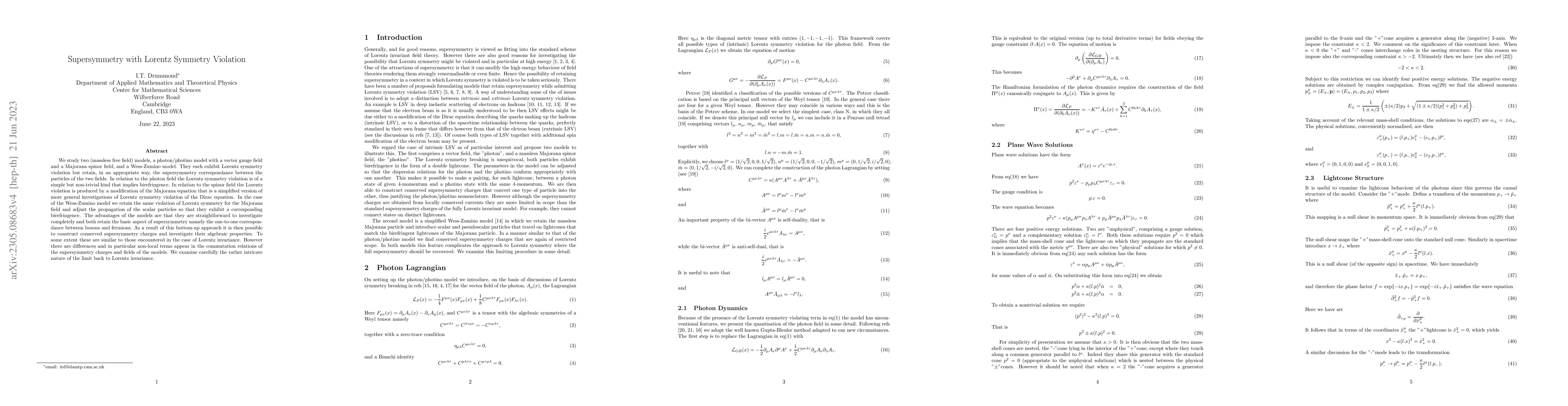 This paper investigates two models with Lorentz symmetry violation while maintaining supersymmetry: a photon/photino model and a Wess-Zumino model. Both models exhibit unique forms of Lorentz violation, including birefringence, while preserving the correspondence between bosons and fermions. The study reveals non-local terms in the commutation relations and explores the transition to Lorentz invariance.