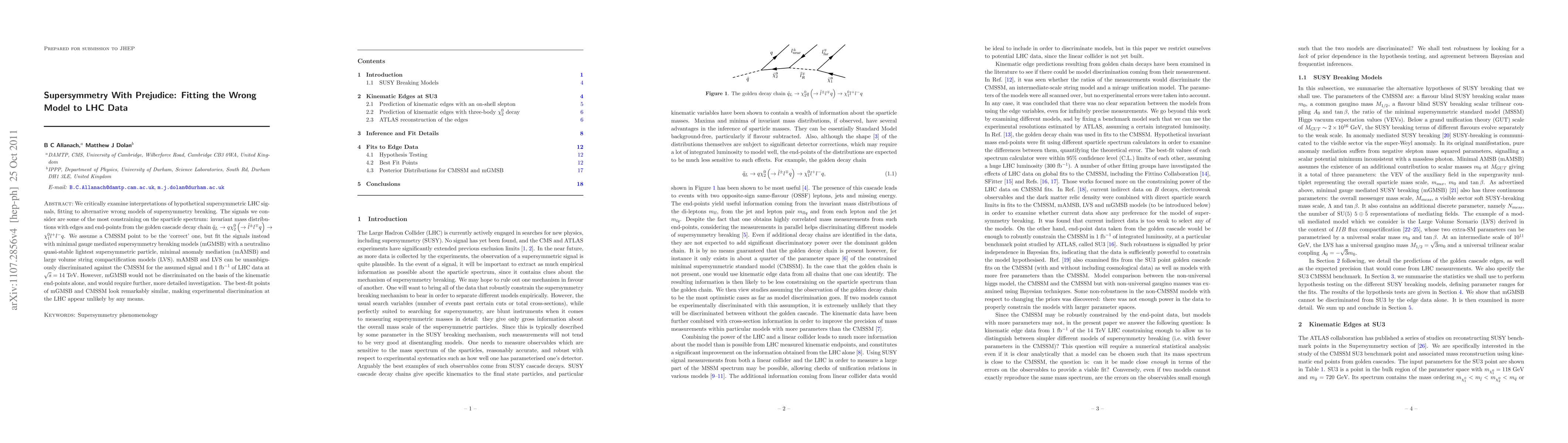 This paper investigates the interpretation of hypothetical supersymmetric signals at the LHC, fitting them to alternative supersymmetry breaking models instead of the assumed correct CMSSM. While mAMSB and LVS models can be discriminated against CMSSM with current LHC data, mGMSB remains indistinguishable based on kinematic end-points alone, requiring more detailed analysis for discrimination.