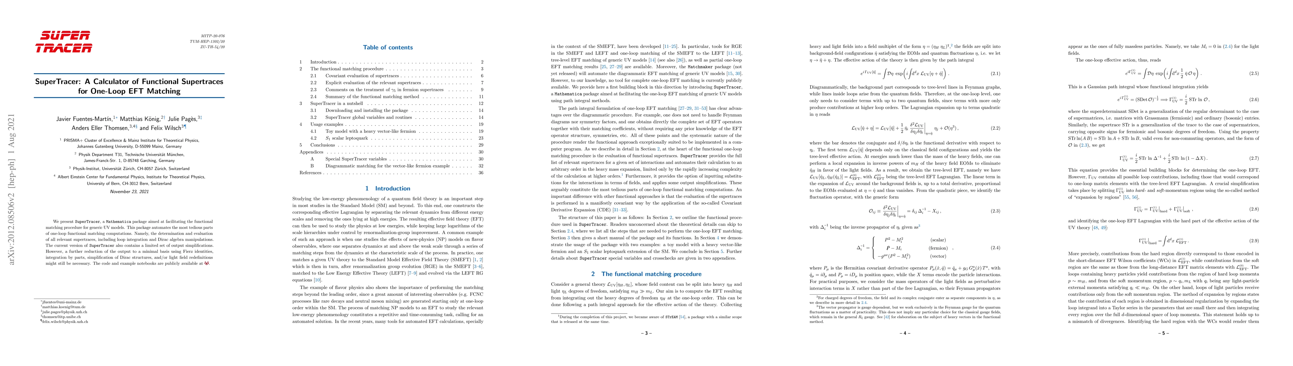 A new Mathematica package called SuperTracer has been developed to simplify one-loop functional matching computations for generic UV models, automating tedious parts of the calculation.