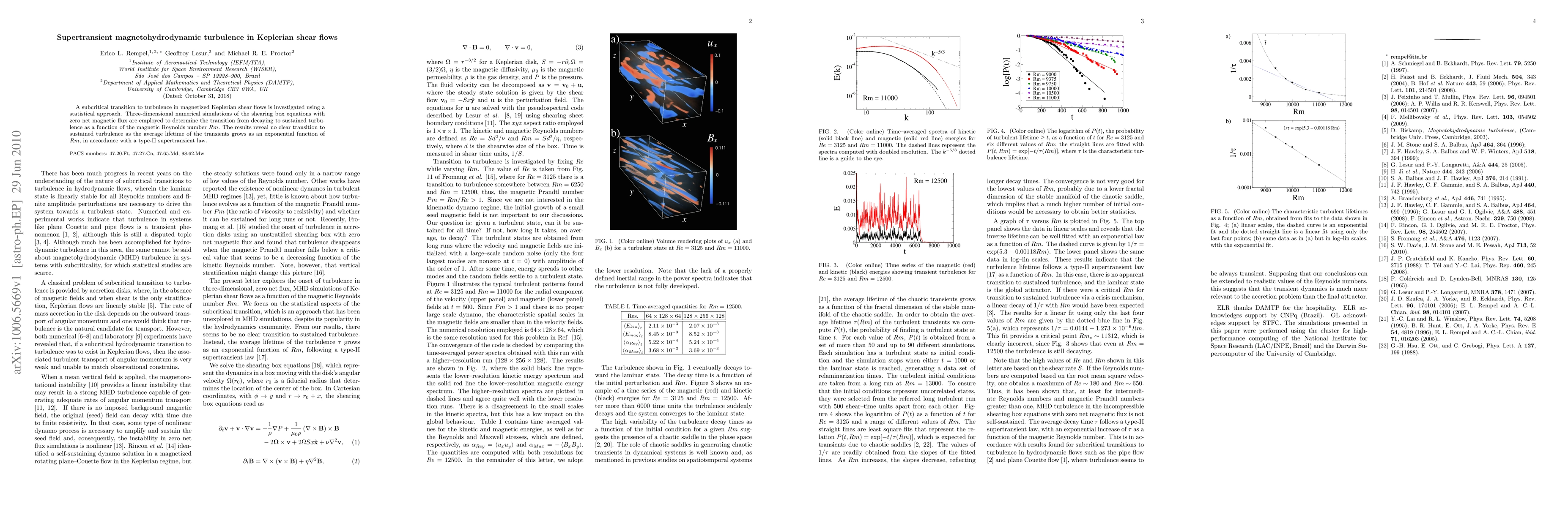 This paper investigates the subcritical transition to turbulence in magnetized Keplerian shear flows, finding that the transition does not lead to sustained turbulence but rather exhibits supertransient behavior characterized by an exponential growth in the average lifetime of turbulence as a function of the magnetic Reynolds number.