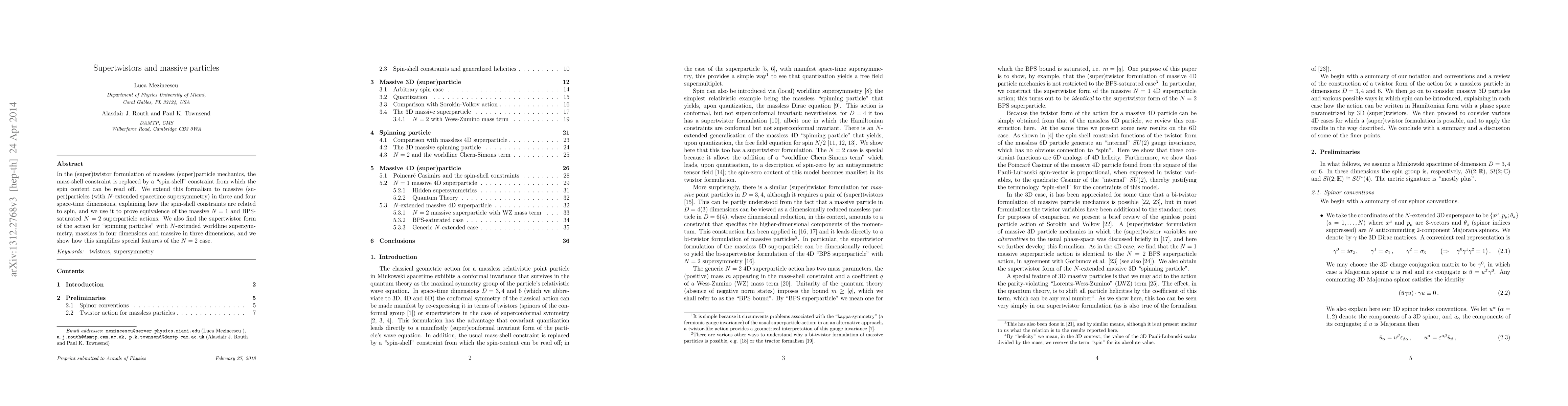 This paper extends the (super)twistor formulation to massive (super)particles, demonstrating the equivalence of the massive N=1 and BPS-saturated N=2 superparticle actions in three and four dimensions. The authors also derive the supertwistor action for spinning particles, showing how it simplifies special features of the N=2 case.