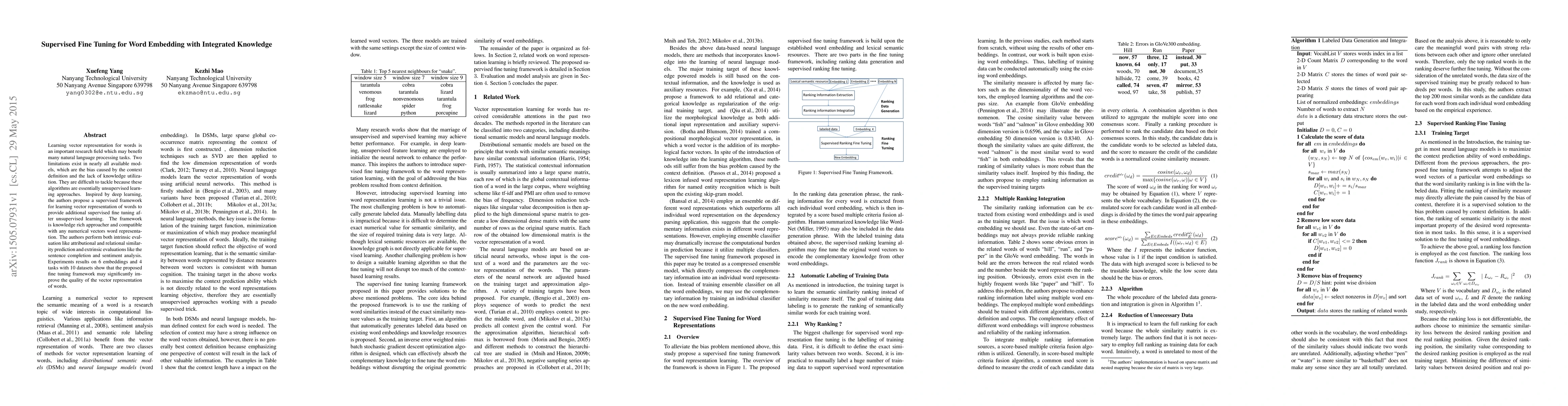 A supervised framework for fine-tuning word embeddings improves vector representation quality through additional supervised learning, achieving significant results in various natural language processing tasks.