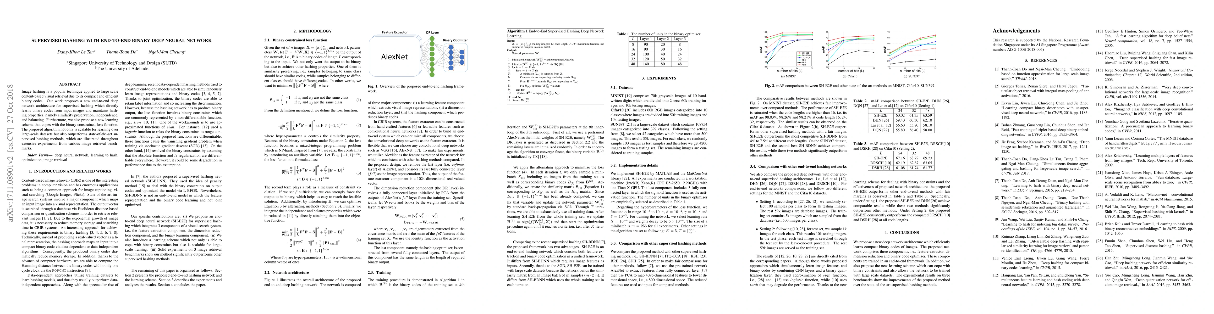 Image hashing is a popular technique applied to large scale content-based visual retrieval due to its compact and efficient binary codes. Our work proposes a new end-to-end deep network architecture for supervised hashing which directly learns binary codes from input images and maintains good properties over binary codes such as similarity preservation, independence, and balancing. Furthermore, we also propose a new learning scheme that can cope with the binary constrained loss function. The proposed algorithm not only is scalable for learning over large-scale datasets but also outperforms state-of-the-art supervised hashing methods, which are illustrated throughout extensive experiments from various image retrieval benchmarks.