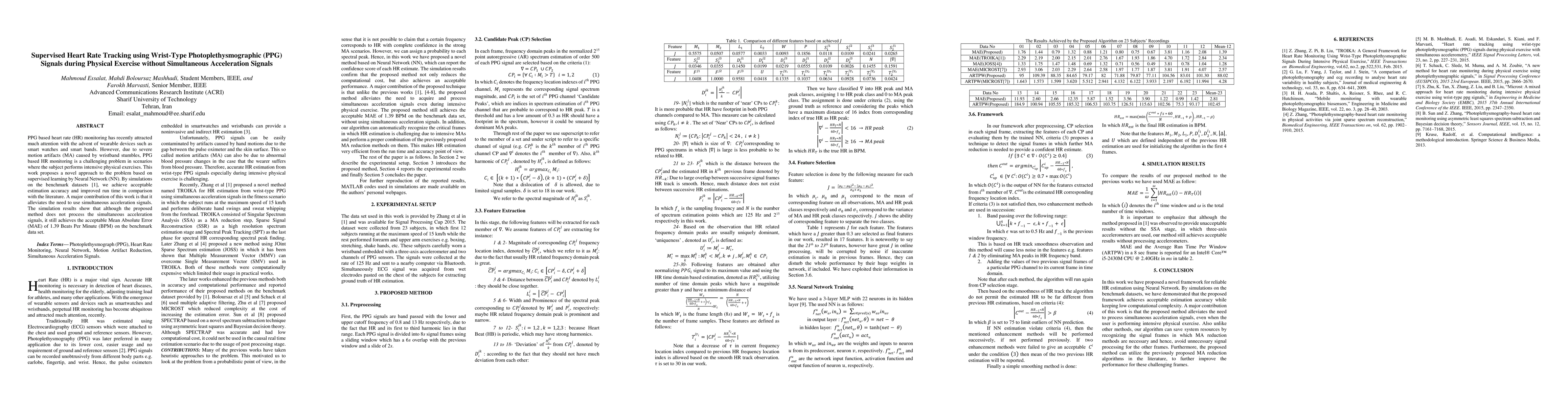 Researchers developed a method to track heart rate accurately during exercise without using simultaneous acceleration signals, achieving an error of 1.39 BPM.