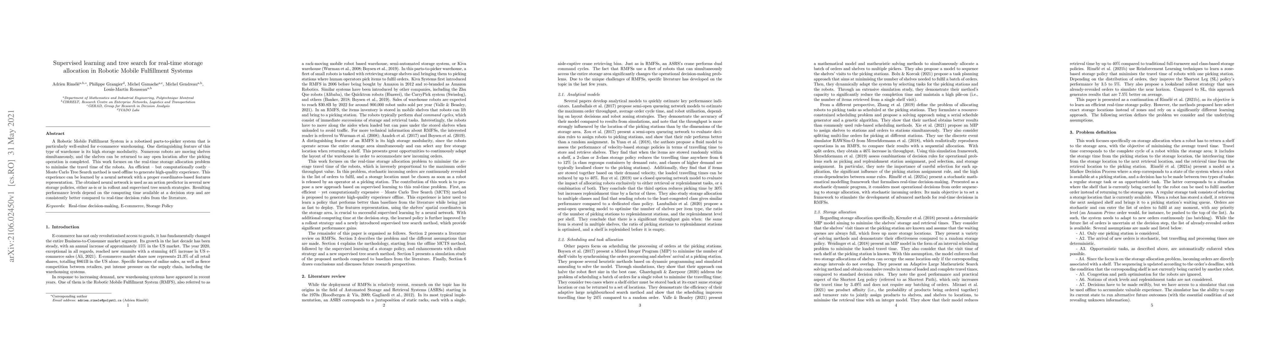 A new method combines supervised learning with tree search to optimize storage allocation in robotic mobile fulfillment systems, outperforming traditional real-time decision rules.