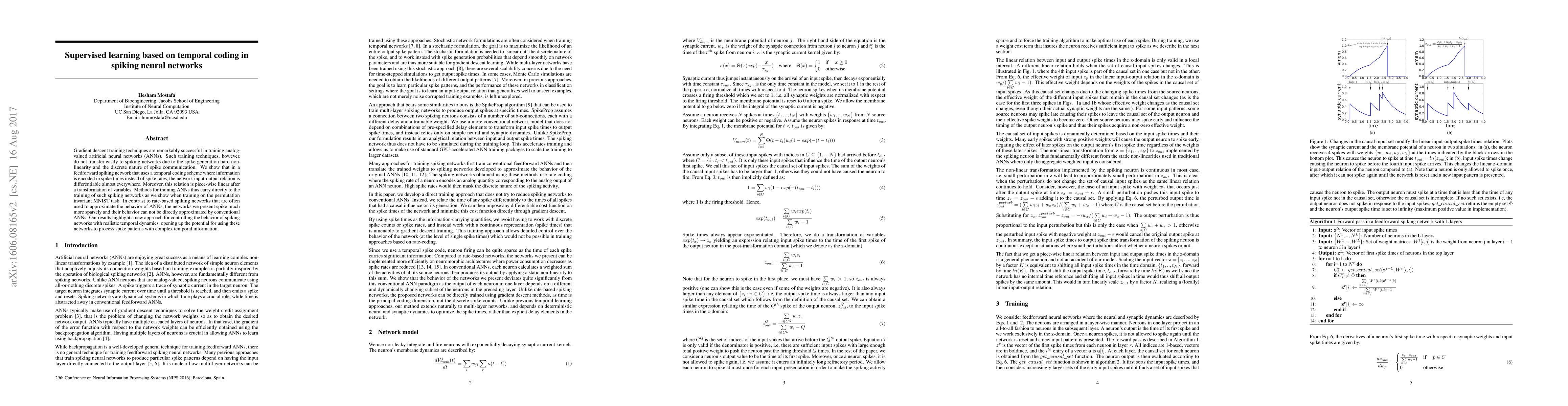 This paper demonstrates that supervised learning techniques for artificial neural networks can be directly applied to spiking neural networks using temporal coding, where information is encoded in spike times rather than rates. This approach allows for sparse spiking and complex temporal dynamics, offering a new method for controlling and utilizing spiking networks.