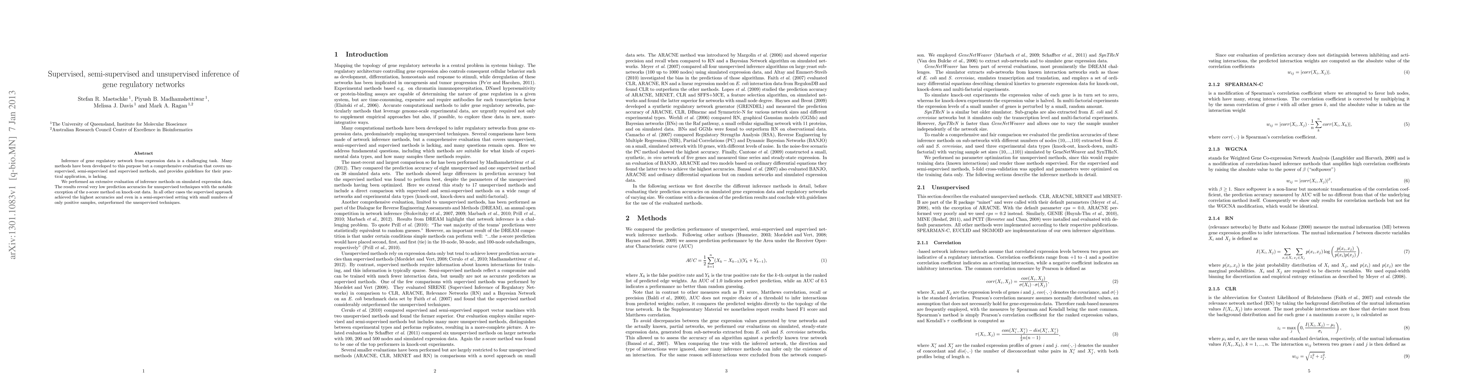 This paper evaluates gene regulatory network inference methods, finding that supervised techniques generally achieve the highest prediction accuracies, while unsupervised methods, except for the z-score method on knock-out data, perform poorly. Semi-supervised methods show improvement but still lag behind supervised approaches.