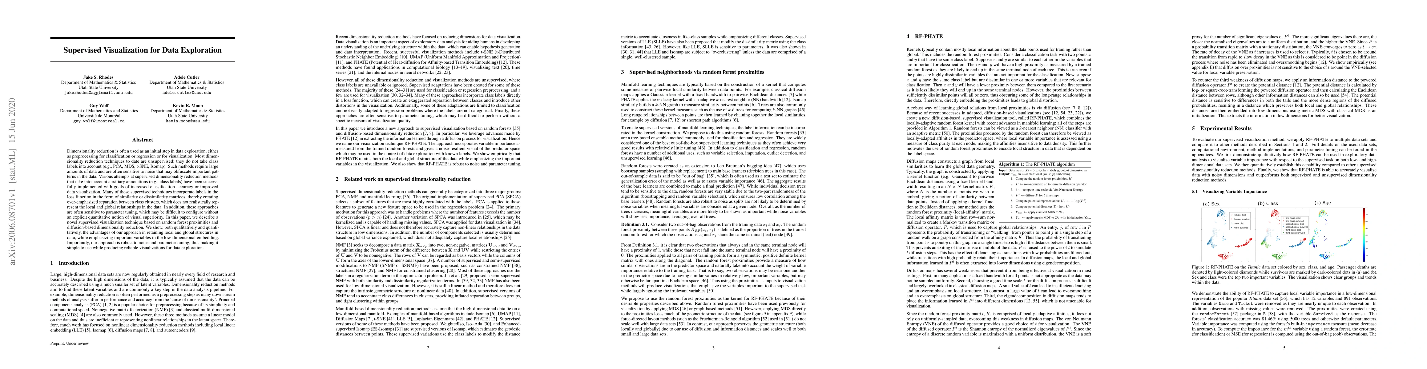 This paper introduces a novel supervised visualization technique that leverages random forest proximities and diffusion-based dimensionality reduction to retain local and global data structures. It demonstrates robustness to noise and parameter tuning, offering reliable visualizations for data exploration.