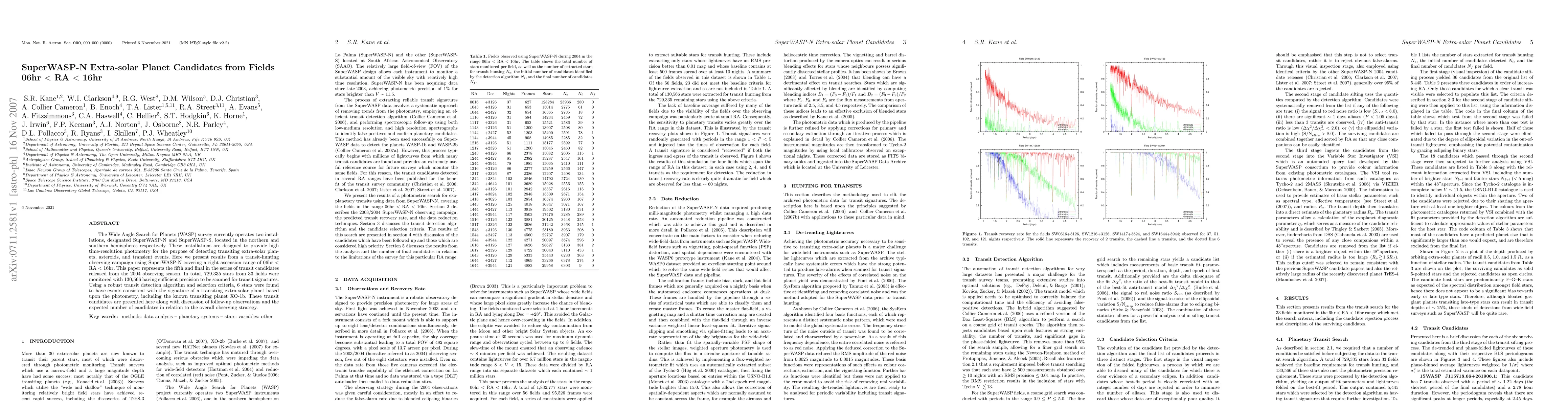 The Wide Angle Search for Planets (WASP) survey currently operates two installations, designated SuperWASP-N and SuperWASP-S, located in the northern and southern hemispheres respectively. These installations are designed to provide high time-resolution photometry for the purpose of detecting transiting extra-solar planets, asteroids, and transient events. Here we present results from a transit-hunting observing campaign using SuperWASP-N covering a right ascension range of 06hr < RA < 16hr. This paper represents the fifth and final in the series of transit candidates released from the 2004 observing season. In total, 729,335 stars from 33 fields were monitored with 130,566 having sufficient precision to be scanned for transit signatures. Using a robust transit detection algorithm and selection criteria, 6 stars were found to have events consistent with the signature of a transiting extra-solar planet based upon the photometry, including the known transiting planet XO-1b. These transit candidates are presented here along with discussion of follow-up observations and the expected number of candidates in relation to the overall observing strategy.