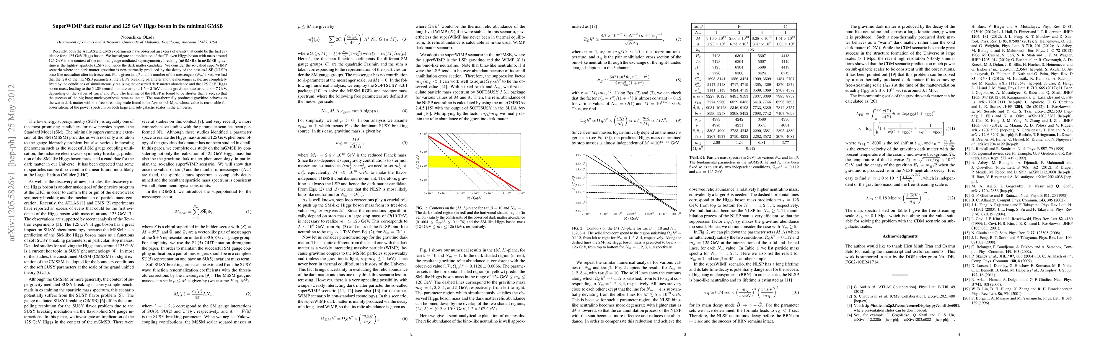 This paper explores the minimal gauge-mediated supersymmetry breaking (mGMSB) framework, specifically addressing the superWIMP scenario where gravitino, the decay product of a bino-like neutralino, serves as the dark matter. It finds that achieving the observed 125 GeV Higgs boson mass and dark matter abundance fixes the mGMSB parameters, resulting in a gravitino mass suitable for warm dark matter.