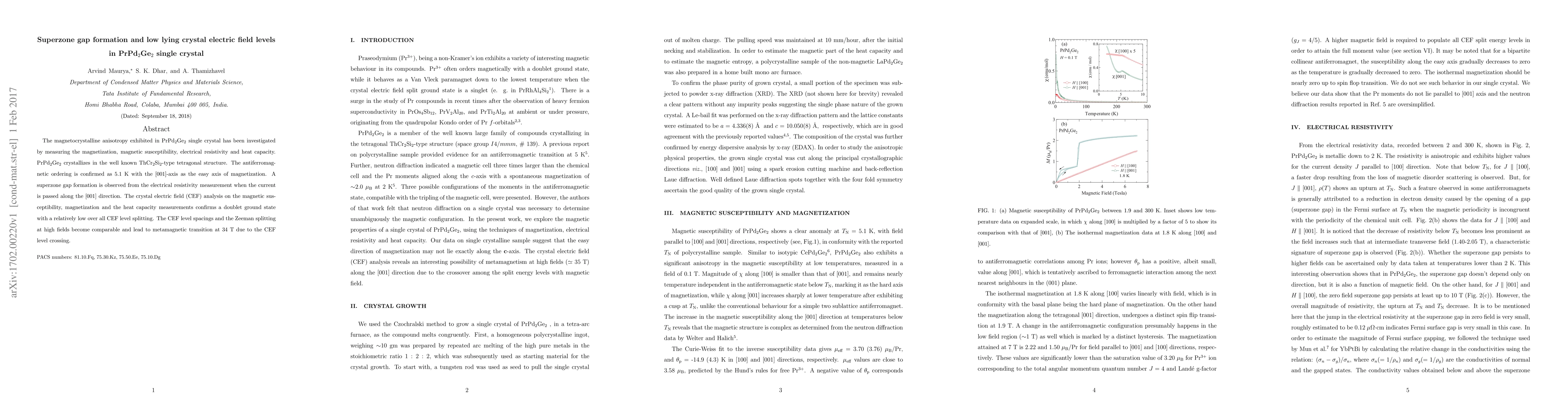 This study investigates the magnetocrystalline anisotropy in PrPd$_2$Ge$_2$ single crystal, revealing antiferromagnetic ordering at 5.1 K with the [001]-axis as the easy axis. A superzone gap forms in electrical resistivity measurements along the [001] direction, and crystal electric field analysis confirms a doublet ground state with low CEF level splitting, leading to a metamagnetic transition at 34 T.