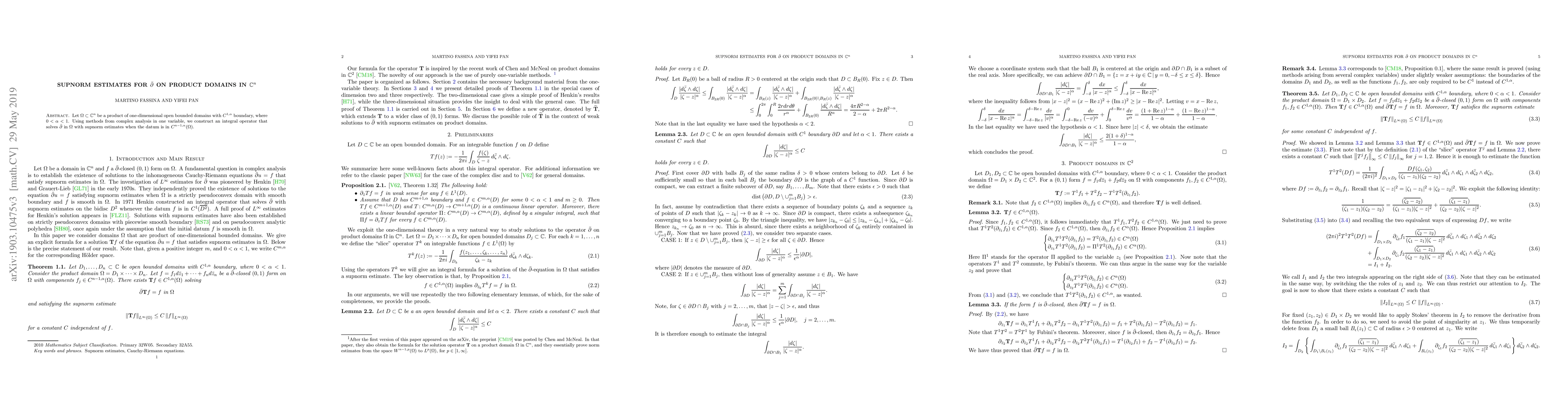 Researchers developed a method to solve the complex differential equation $ar heta$ on product domains in $bb{C}^n$ with supnorm estimates, using $C^{1,fty}$ boundary conditions and $C^{n-fty}$ datums.