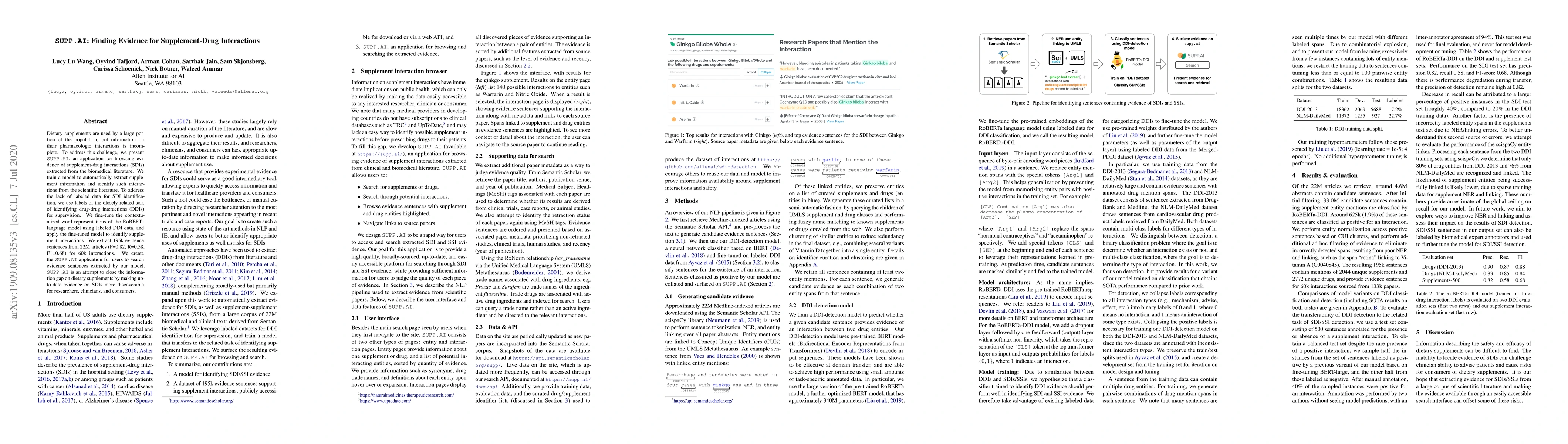 SUPP.AI is an application that extracts evidence of supplement-drug interactions (SDIs) from biomedical literature using a fine-tuned RoBERTa model. It aims to fill the information gap on SDIs by making this evidence more accessible for researchers, clinicians, and consumers.
