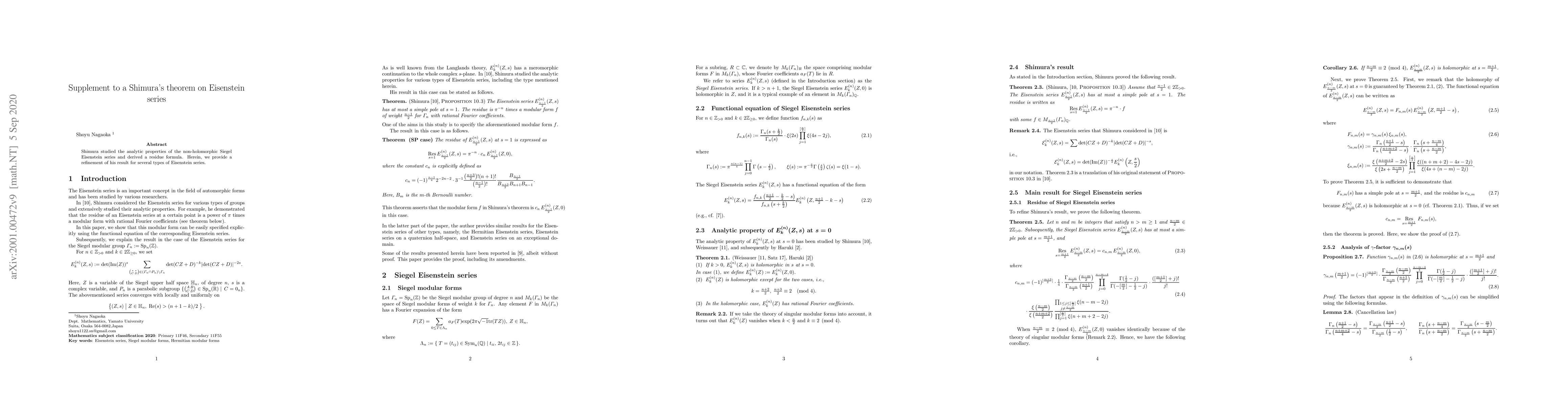 This paper refines Shimura's residue formula for non-holomorphic Siegel Eisenstein series, offering enhanced analytic properties and detailed results for various types of Eisenstein series.