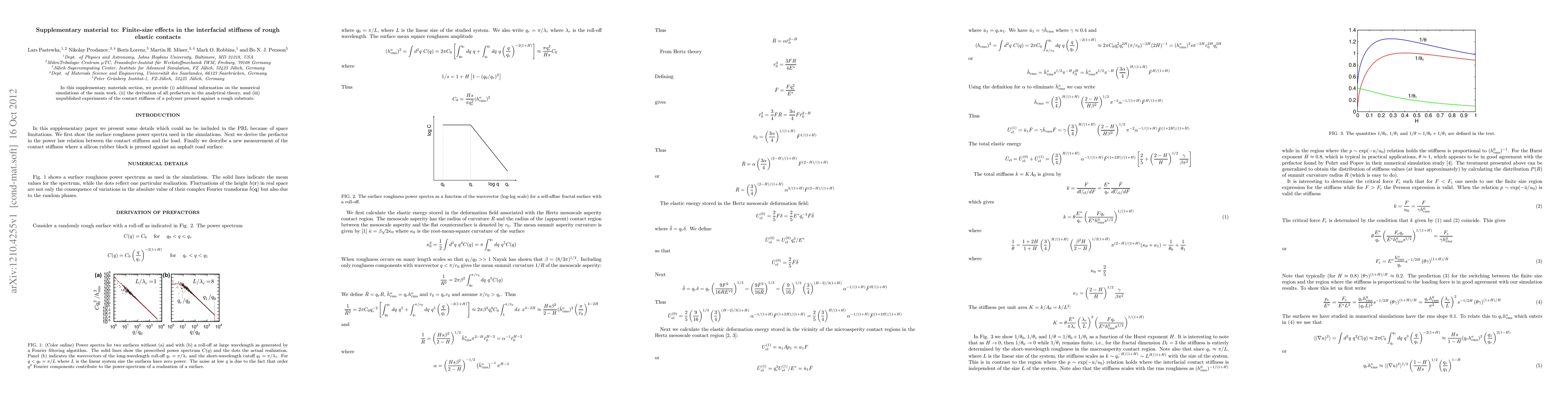 In this supplementary materials section, we provide (i) additional information on the numerical simulations of the main work, (ii) the derivation of all prefactors in the analytical theory, and (iii) unpublished experiments of the contact stiffness of a polymer pressed against a rough substrate.