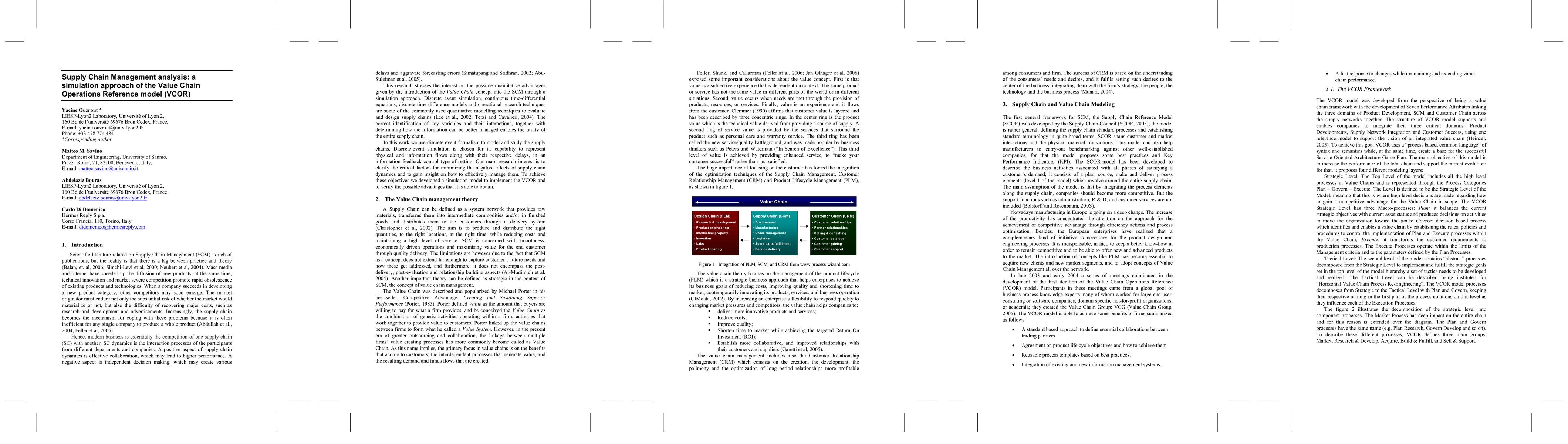 This research paper analyzes the benefits of implementing the Value Chain Operations Reference model (VCOR) in Supply Chain Management (SCM) through simulation. Comparing VCOR with the SCOR method, the study validates VCOR's advantages using a real-world industrial case study, suggesting that VCOR facilitates a more adaptable, collaborative, and customer-focused supply chain strategy in a globalized market.