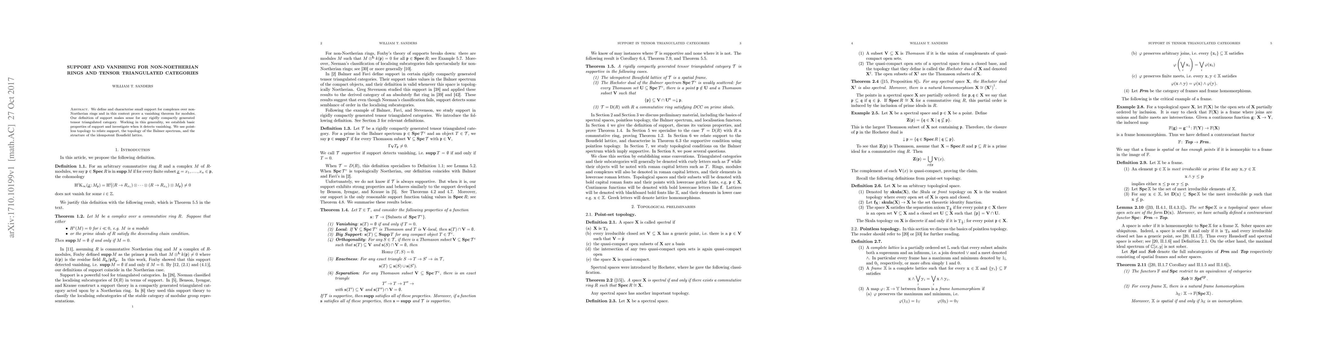 We define and characterise small support for complexes over non-Noetherian rings and in this context prove a vanishing theorem for modules. Our definition of support makes sense for any rigidly compactly generated tensor triangulated category. Working in this generality, we establish basic properties of support and investigate when it detects vanishing. We use pointless topology to relate support, the topology of the Balmer spectrum, and the structure of the idempotent Bousfield lattice.