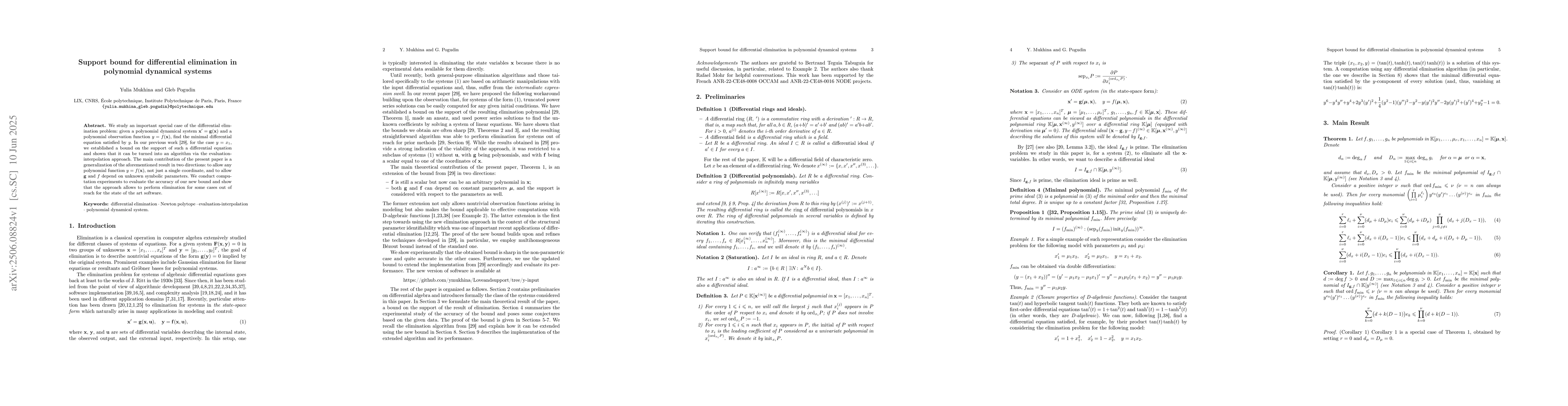 This research paper develops a bound on the support of differential equations for polynomial dynamical systems with observation functions, enabling elimination in cases previously unsolvable.