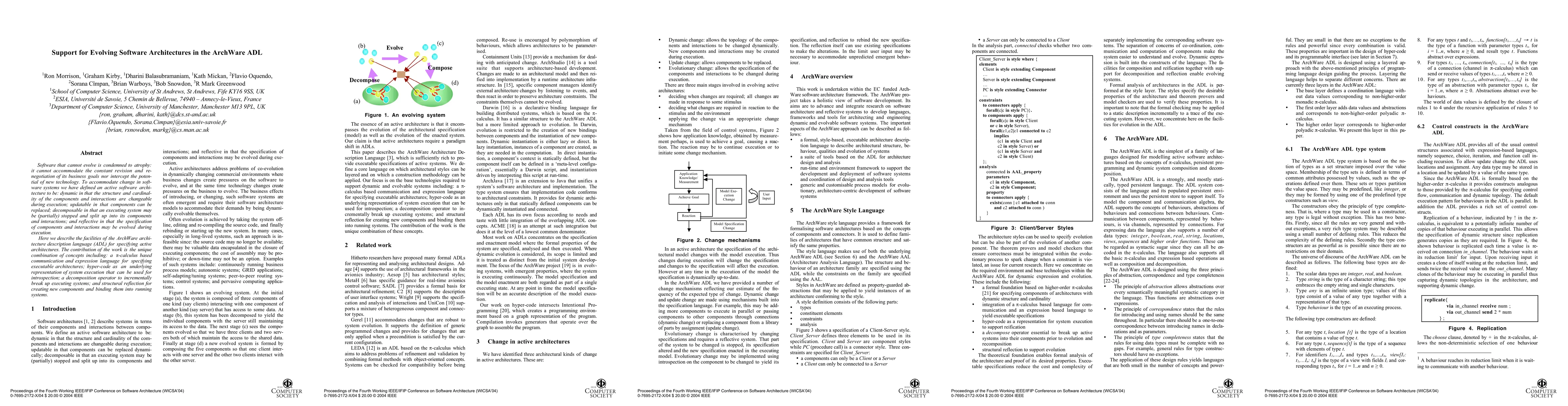 The ArchWare ADL provides a framework for evolving software architectures that can adapt to changing business goals and technology, enabling more dynamic and responsive systems. It combines concepts such as a communication language, hyper-code representation, decomposition operator, and structural reflection to support active architecture evolution.