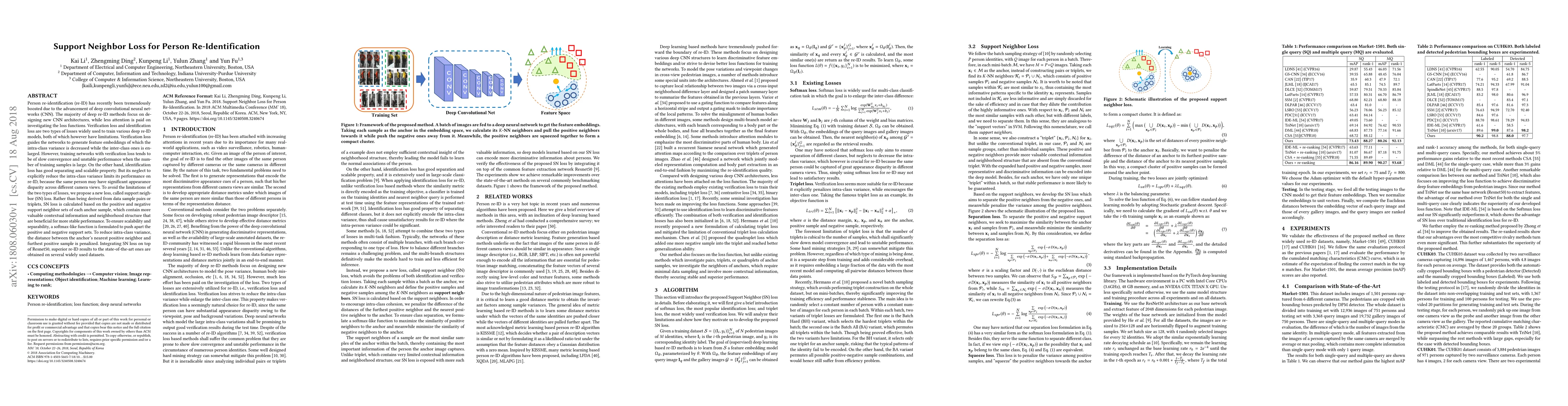 A new loss function called support neighbor (SN) loss is proposed to improve person re-identification performance by leveraging contextual information and neighborhood structure, achieving superior results on several widely used datasets.