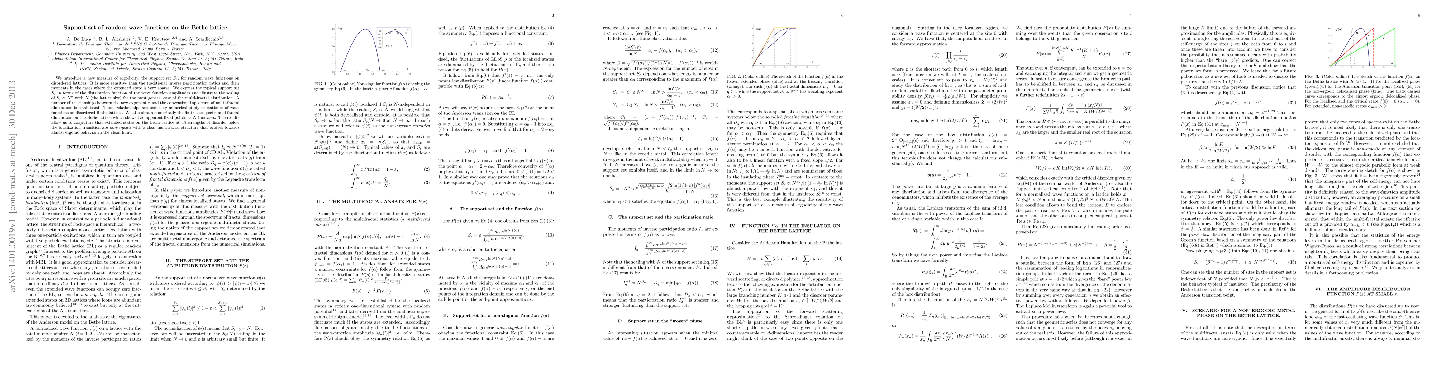 We introduce a new measure of ergodicity, the support set $S_\varepsilon$, for random wave functions on disordered lattices. It is more sensitive than the traditional inverse participation ratios and their moments in the cases where the extended state is very sparse. We express the typical support set $S_{\varepsilon}$ in terms of the distribution function of the wave function amplitudes and illustrate the scaling of $S_{\varepsilon}\propto N^{\alpha}$ with $N$ (the lattice size) for the most general case of the multi-fractal distribution. A number of relationships between the new exponent $\alpha$ and the conventional spectrum of multi-fractal dimensions is established. These relationships are tested by numerical study of statistics of wave functions on disordered Bethe lattices. We also obtain numerically the finite-size spectrum of fractal dimensions on the Bethe lattice which shows two apparent fixed points as $N$ increases. The results allow us to conjecture that extended states on the Bethe lattice at all strengths of disorder below the localization transition are non-ergodic with a clear multifractal structure that evolves towards almost ergodic behavior in the clean limit.