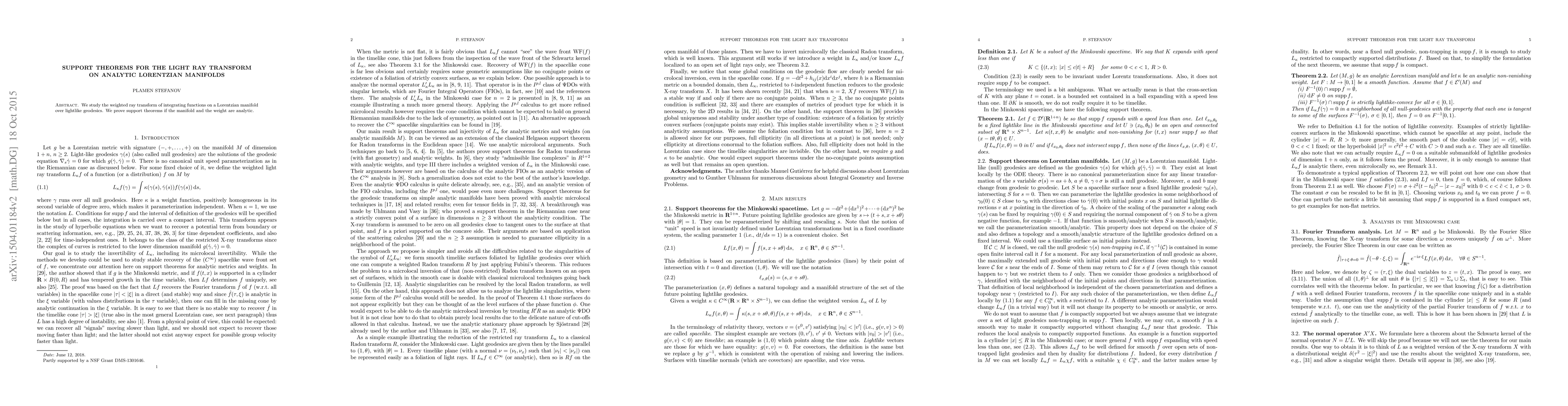 Summary: This paper investigates the weighted ray transform along lightlike geodesics on analytic Lorentzian manifolds and establishes support theorems under the conditions of analyticity for both the manifold and the weight function.