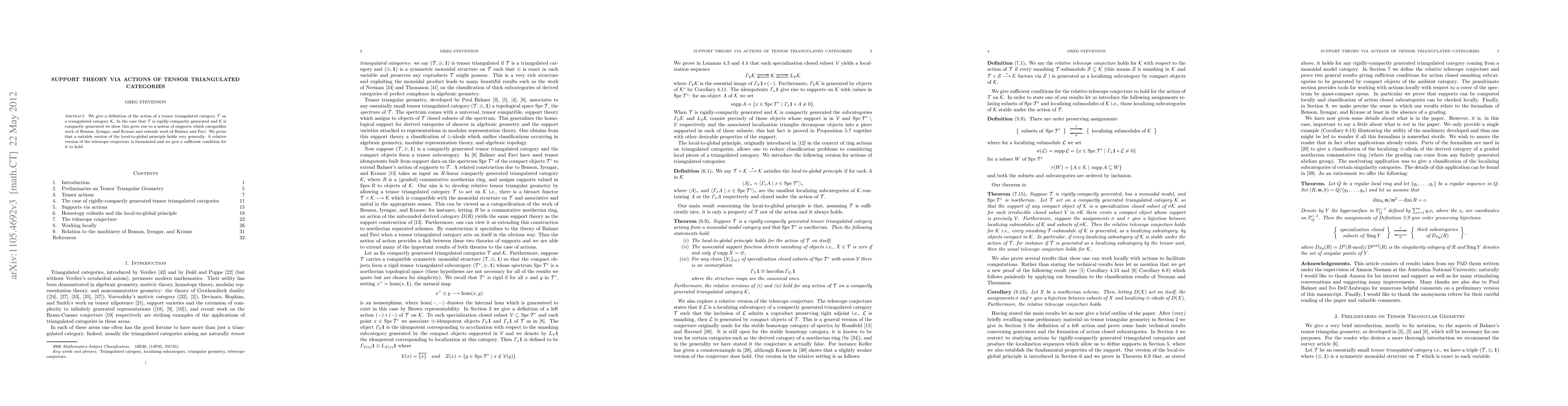 This paper defines the action of a tensor triangulated category T on another triangulated category K, extending prior work and introducing a notion of supports in the compactly generated case. It proves a local-to-global principle and formulates a relative telescope conjecture with a sufficient condition for its validity.