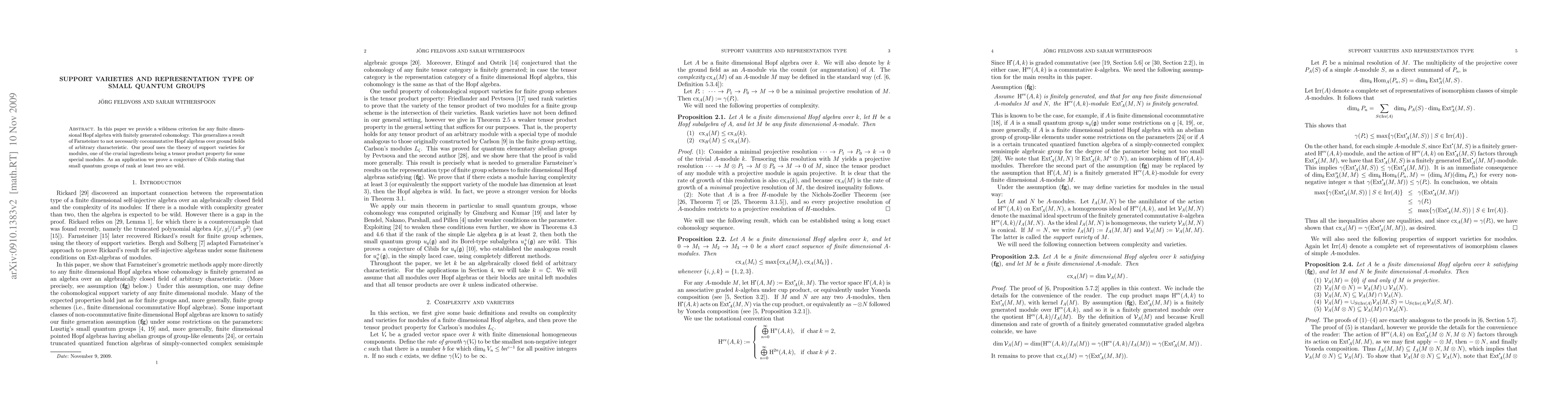 This paper establishes a wildness criterion for finite-dimensional Hopf algebras with finitely generated cohomology, extending Farsteinser's result to non-cocommutative algebras over fields of any characteristic. It utilizes support varieties and proves that small quantum groups of rank at least two are wild.
