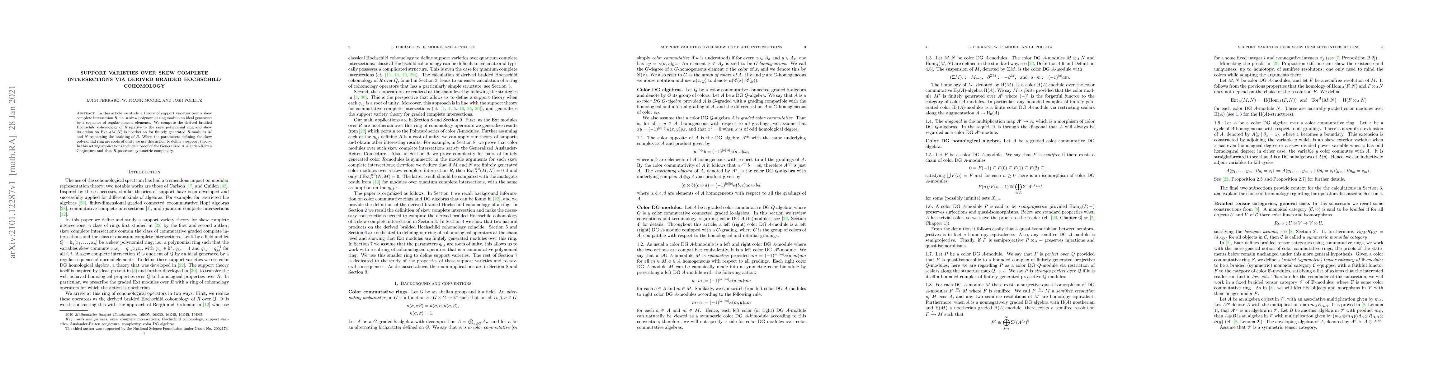 This paper explores support varieties over skew complete intersections, computing derived braided Hochschild cohomology and demonstrating its noetherian action on Ext groups. It defines a support theory when parameters are roots of unity, leading to proofs of the Generalized Auslander-Reiten Conjecture and symmetric complexity for the ring.