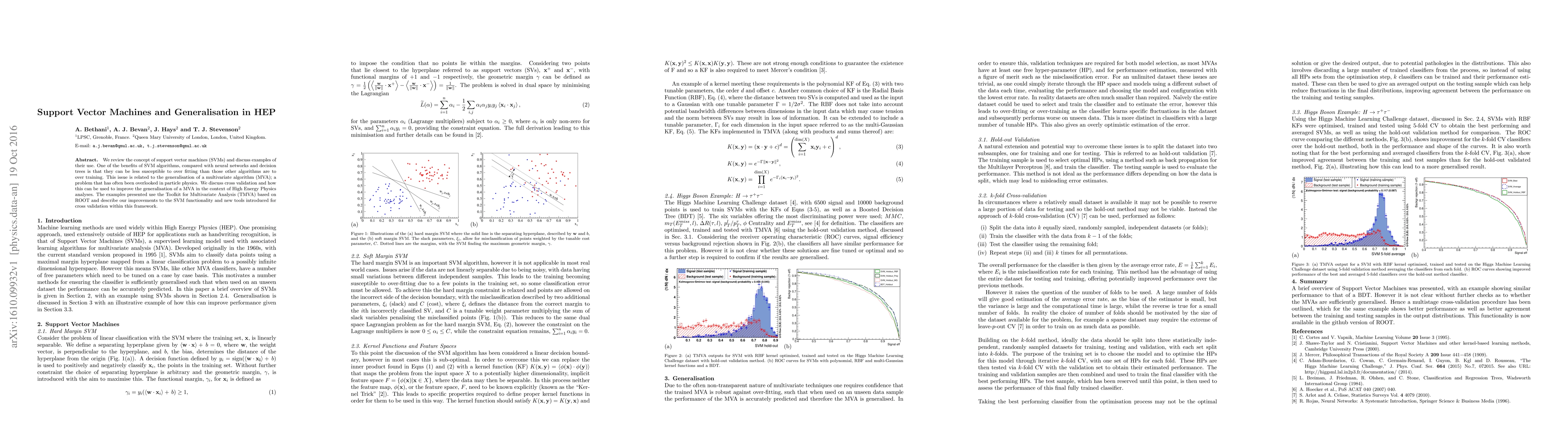 This paper reviews support vector machines (SVMs) and their advantages over neural networks and decision trees in terms of overfitting, emphasizing their role in improving generalisation in High Energy Physics (HEP) analyses. It introduces enhancements to SVM functionality and new cross validation tools in the TMVA framework to bolster multivariate algorithm generalisation.